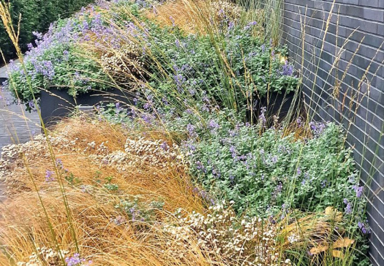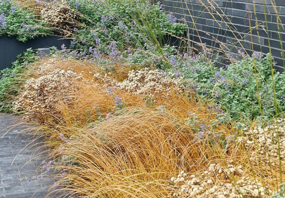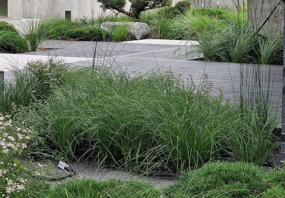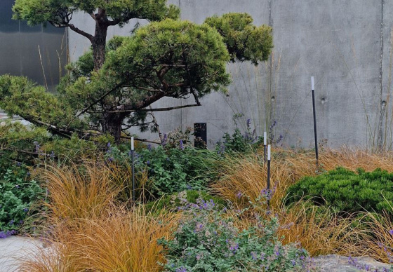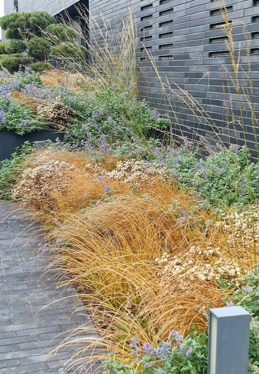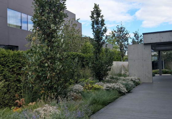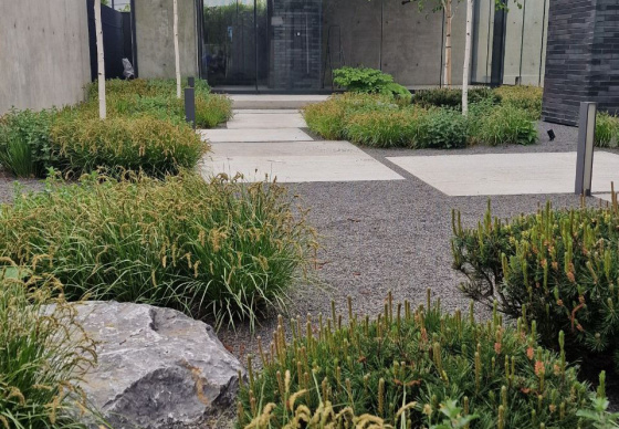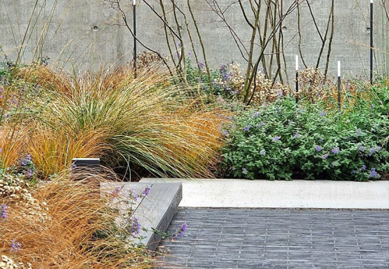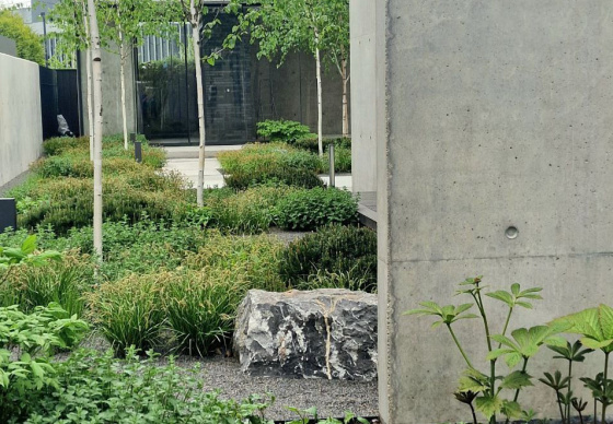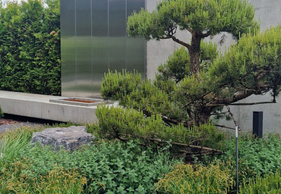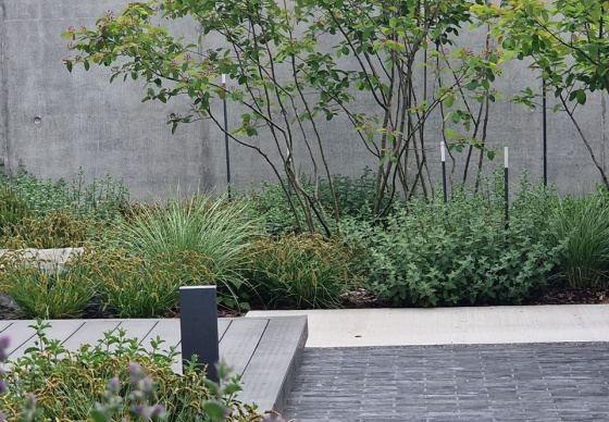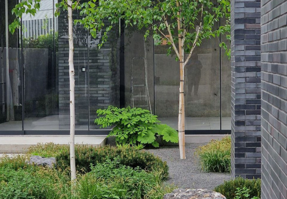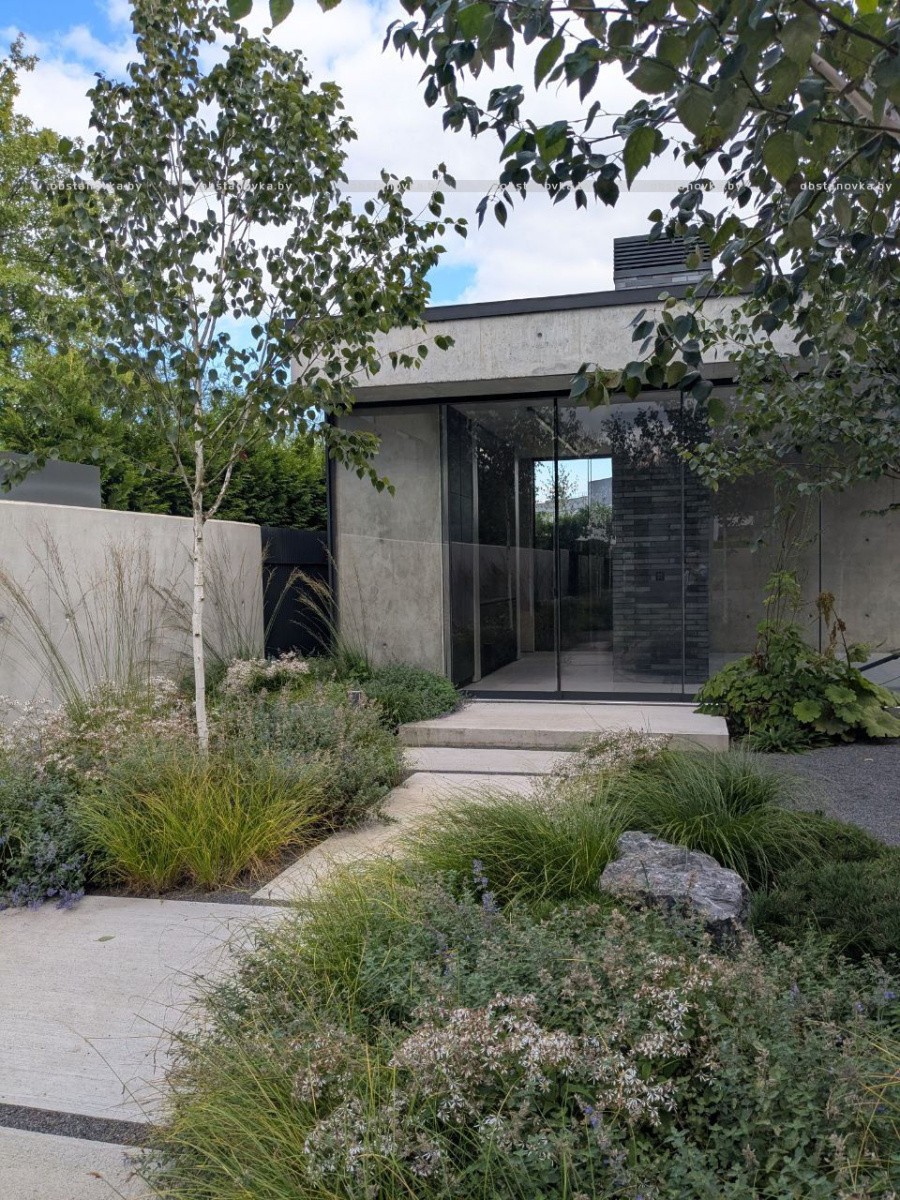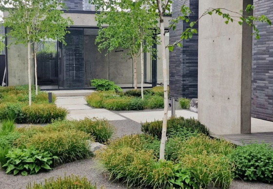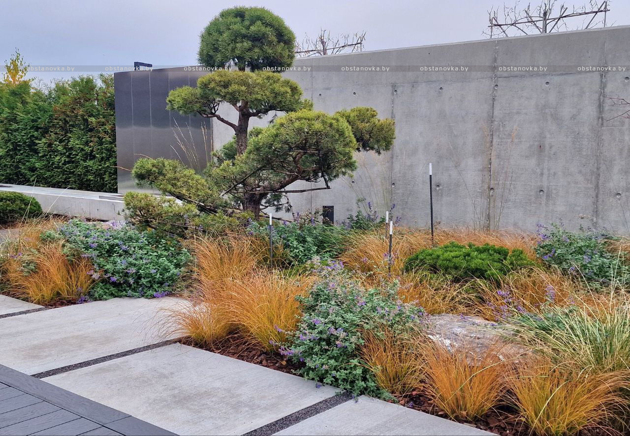 Перед нами стояла очень сложная задача — сделать уютный сад среди бетона и стекла, чтобы из окна наши заказчики не видели чужую жизнь, а могли рассматривать красивые деревья, травы и вдыхать аромат цветов.