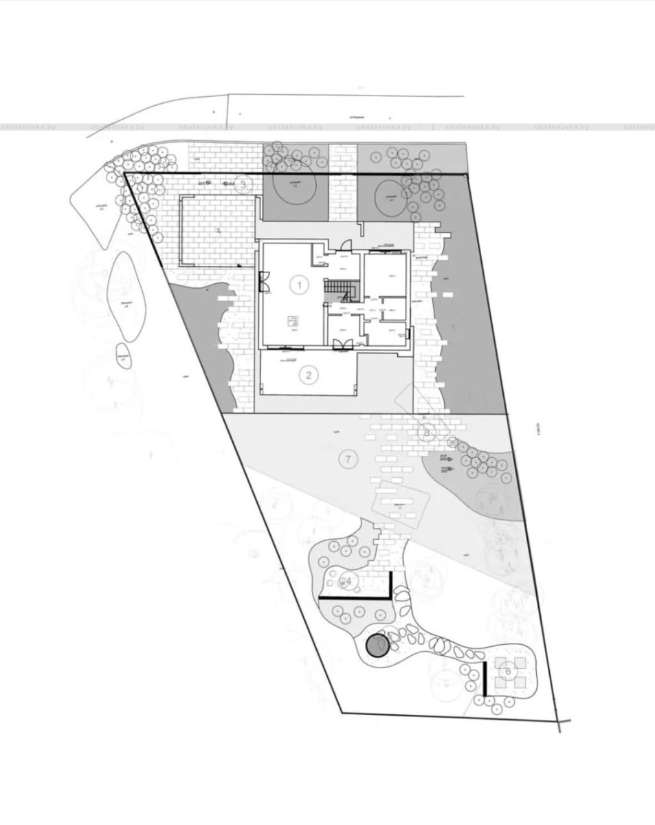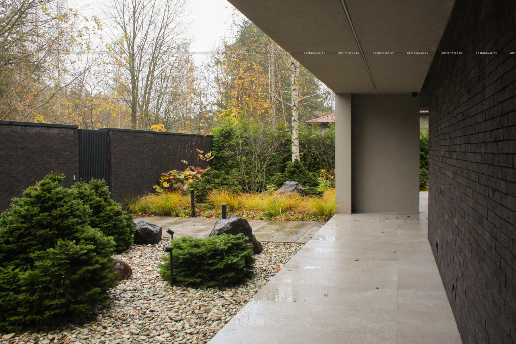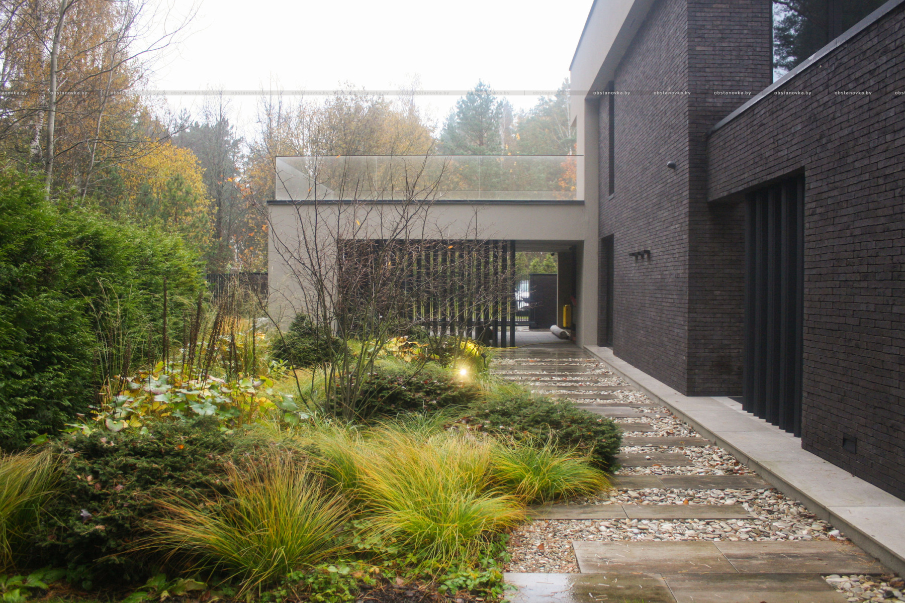 Участок располагается на окраине посёлка и примыкает к лесу, и это сподвигло продолжить природный контекст на участке, растворить границы и сохранить умиротворение окружения. Чёткий, понятный дизайн всех элементов родился и на основе самого характера хозяев, где чувствуются строгость, понимание собственных границ, целеустремлённость на пару с трепетом человеческой души.