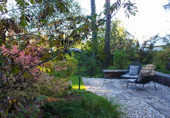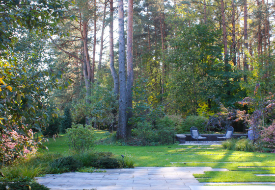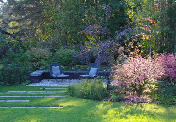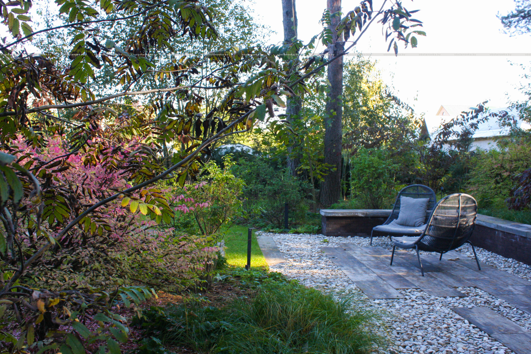Мне нравится отдавать природе большую часть пространства, даже минуя статичные элементы, потому что в ней человек не чувствует себя одиноким, а наоборот — наполняется жизнью и энергией. И с практической точки зрения это снижает уходные работы в саду, где листья в цветниках проживают свой естественный цикл, что на таких участках особенно важно.