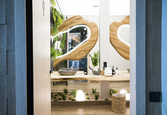 Концепция гармонии сущности отражает идею о единстве человека с природой, о поиске внутреннего равновесия и гармонии. В отделке этого интерьера мы собрали локальные природные дары. Центральным элементом интерьера является дерево, которое объединяет природную тематику всего пространства, от него расходятся линии и смысловые зоны интерьера.