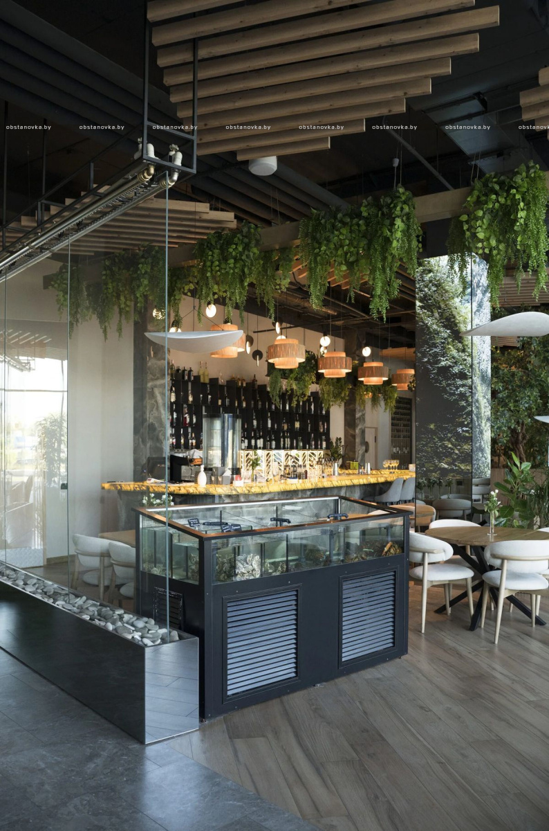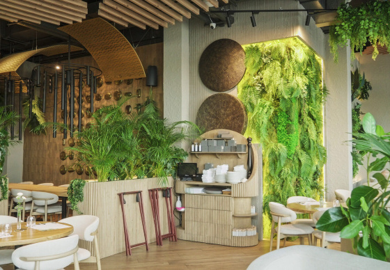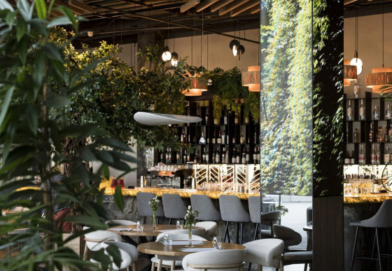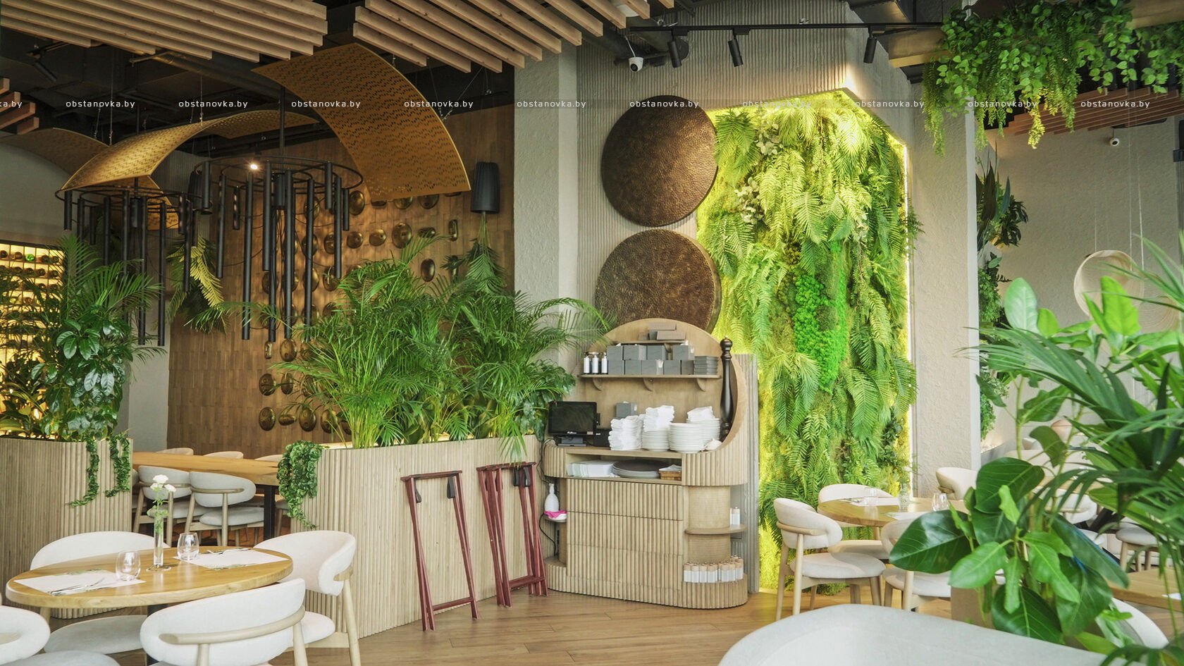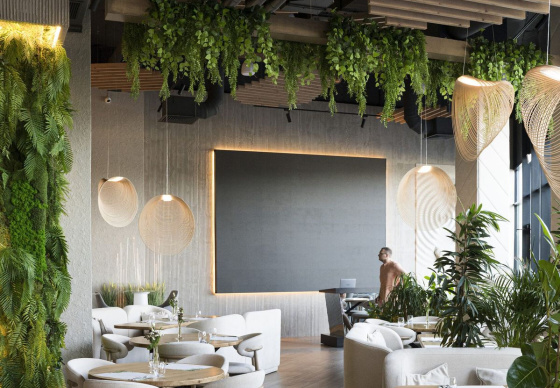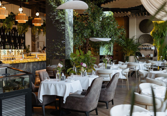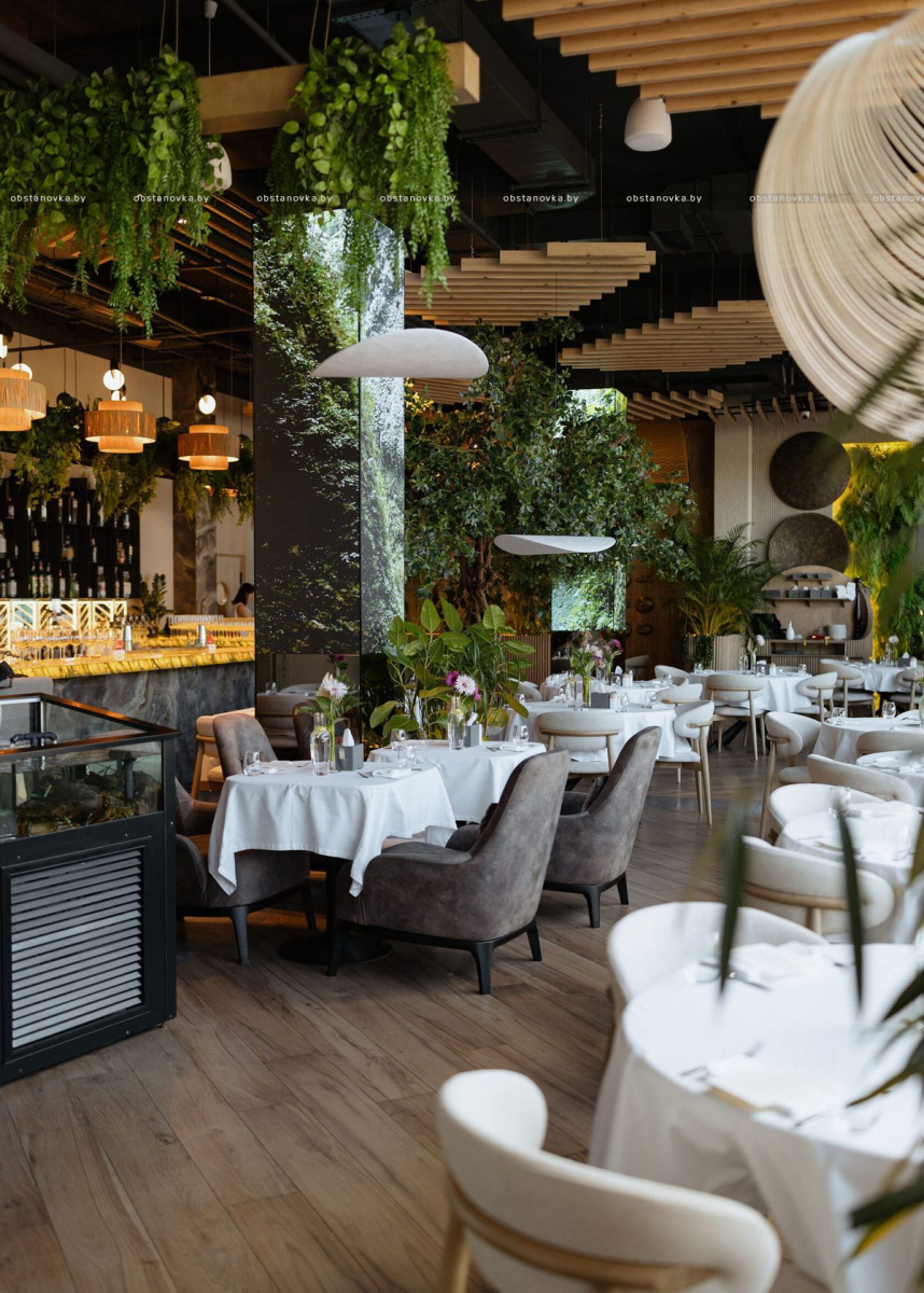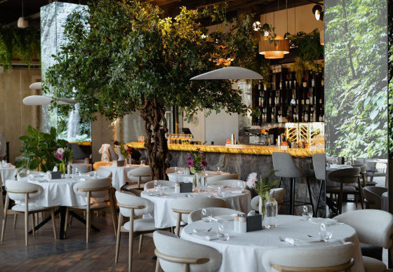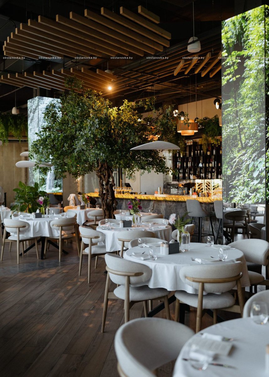 Ресторан LEON создан как оазис природы в городской суете, где гости могут насладиться атмосферой спокойствия и гармонии.