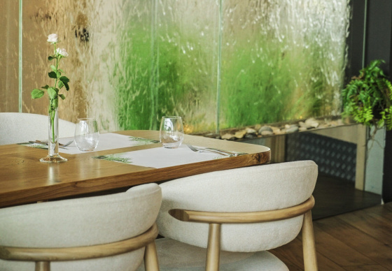 Водопад по стеклу: Современные технологии будут использоваться для создания водопада по стеклу, при этом сохраняя простоту и минимализм в дизайне. Это будет символизировать стремление к совершенству и инновациям, не забывая о природных ценностях. Ресторан LEON будет выделяться своей экологической устойчивостью, используя натуральные материалы, энергоэффективные технологии и заботясь о сохранении природы.