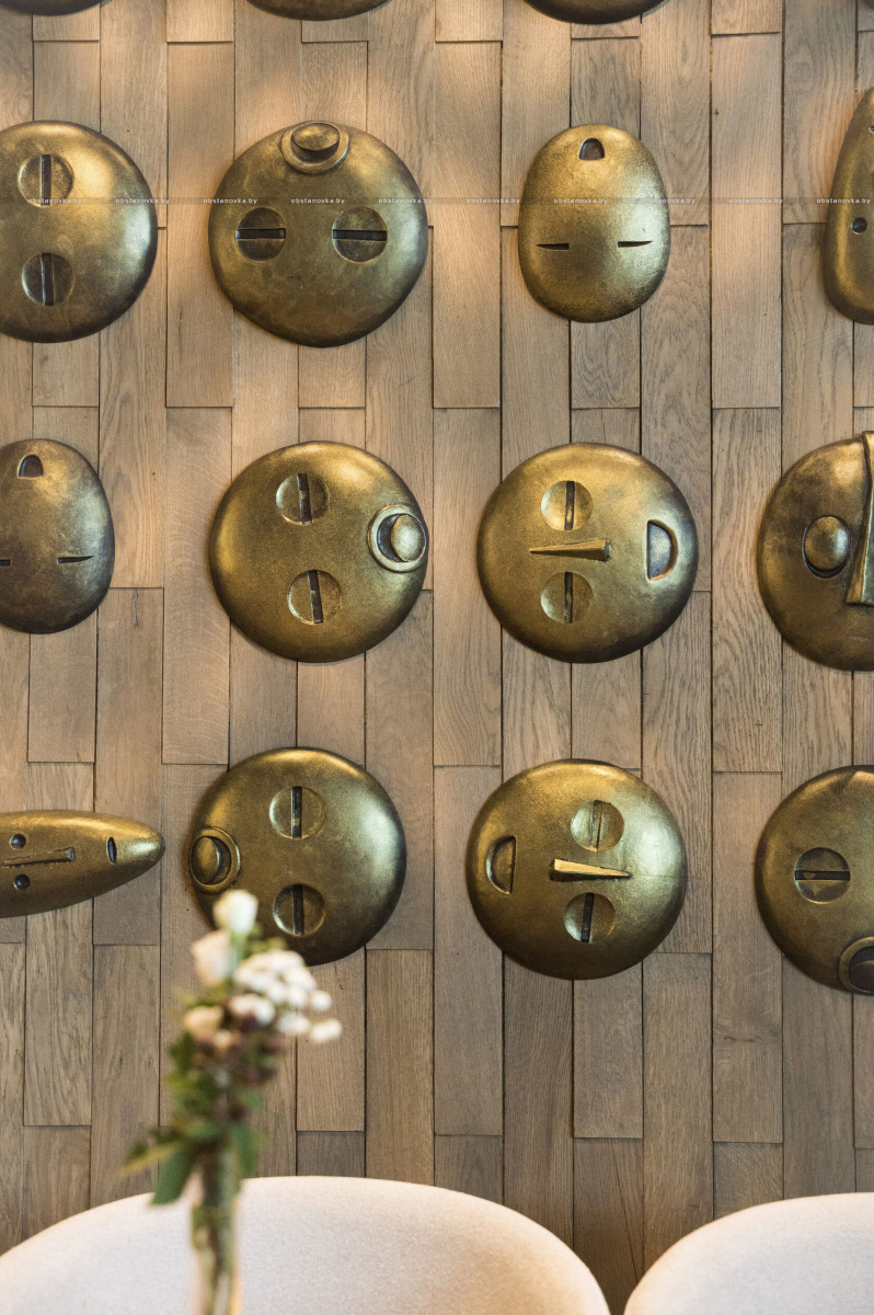 Вип-зона с деревянной дранкой на стене и масками это уголок, где гости могут насладиться уникальной атмосферой, насыщенной культурными символами и природной красотой. Эта локация может стать местом для вдохновения, релаксации и погружения в мир экзотических приключений. Маски, являются символом культурного наследия и традиций различных культур и времен.