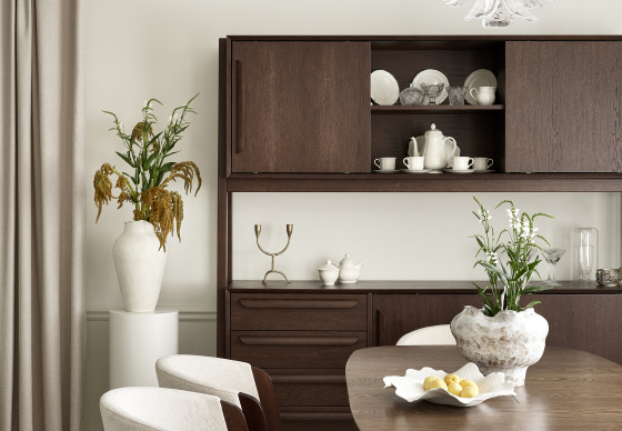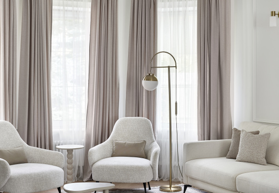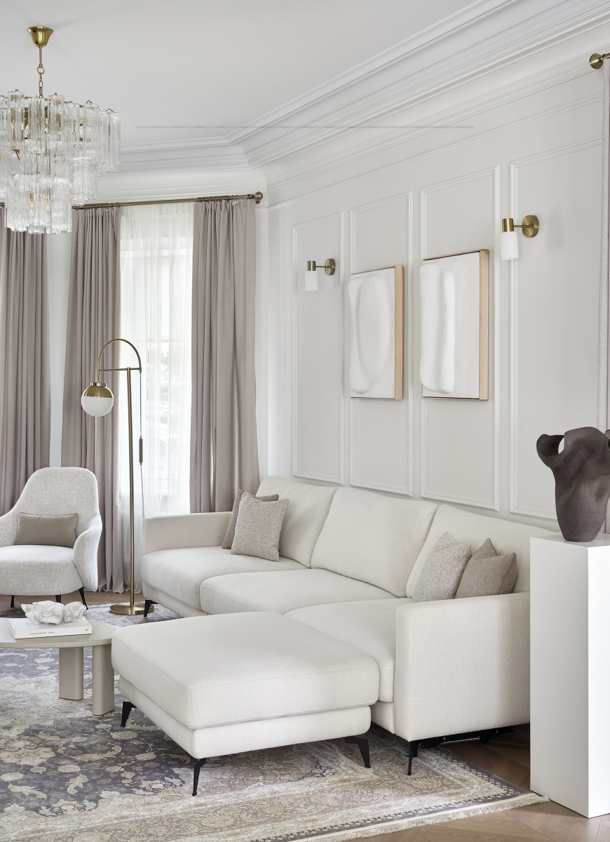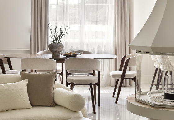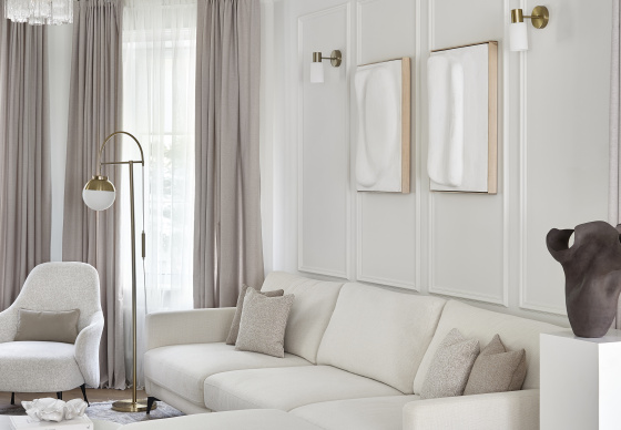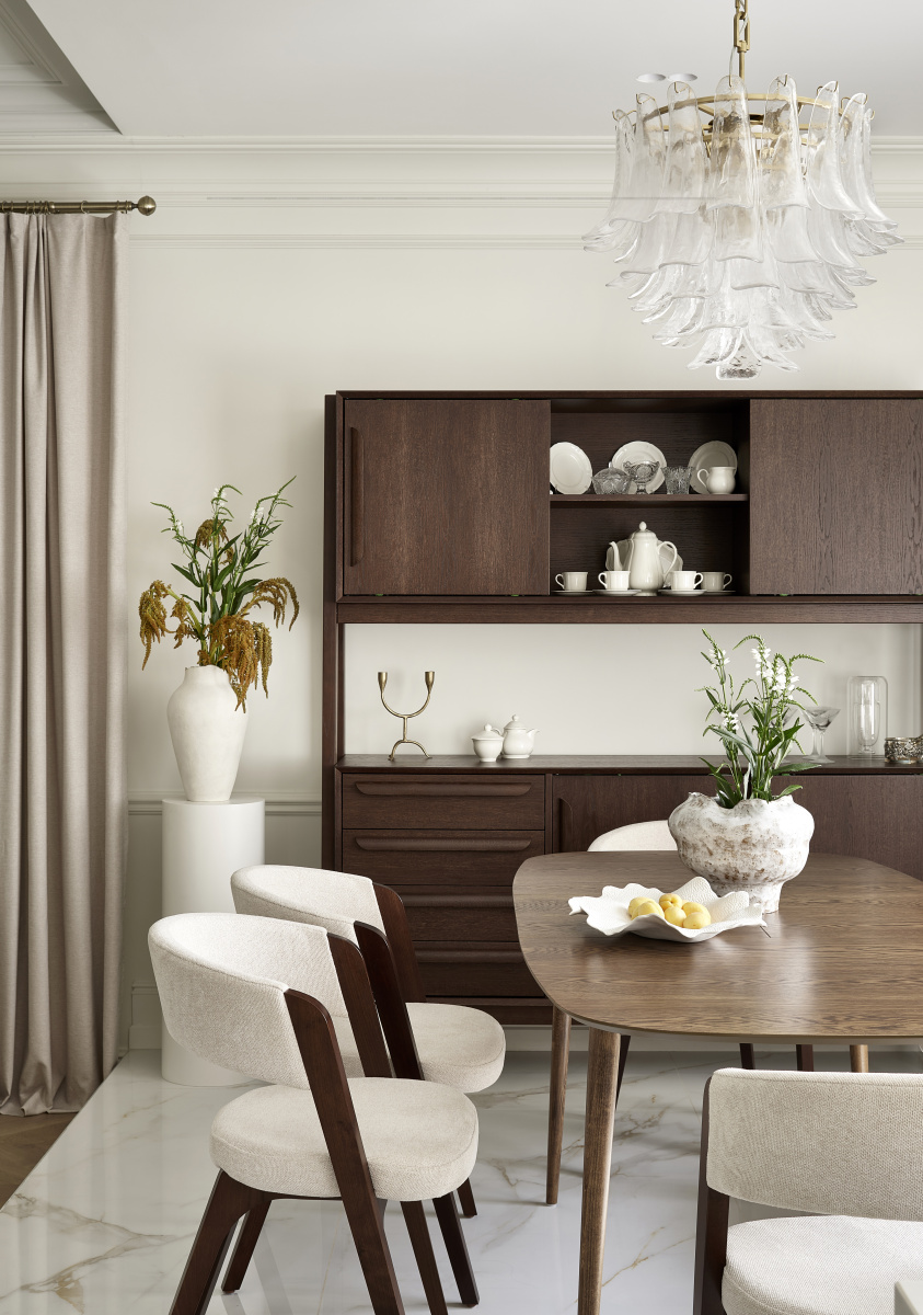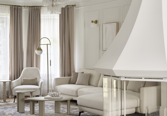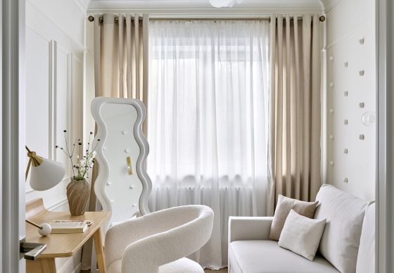 В интерьере мы соединили классику и современность, добавили винтажные элементы и сделали ставку на многослойность и тактильность.