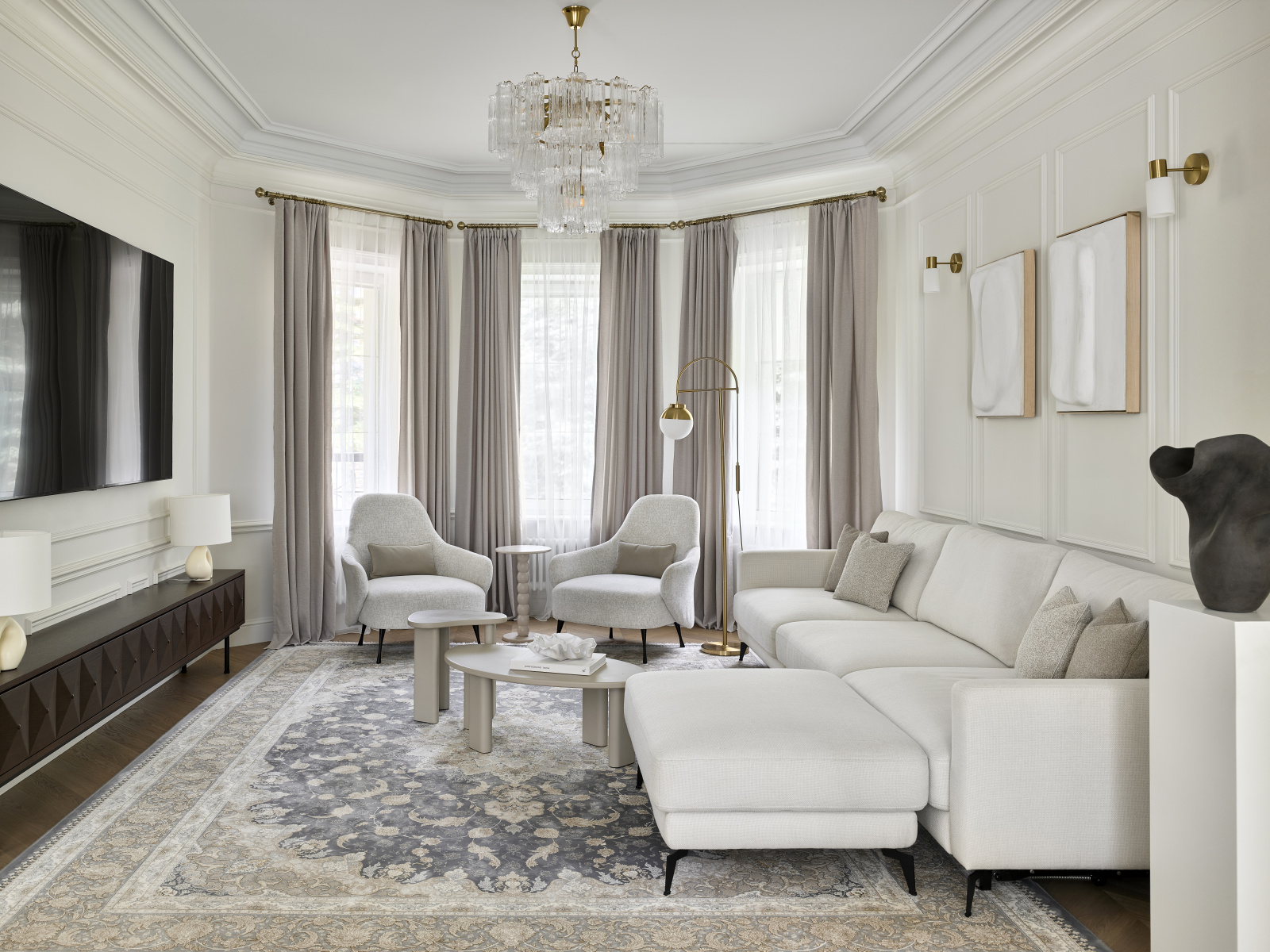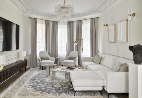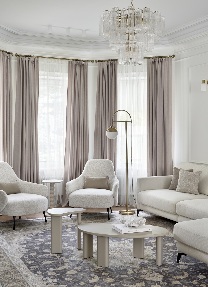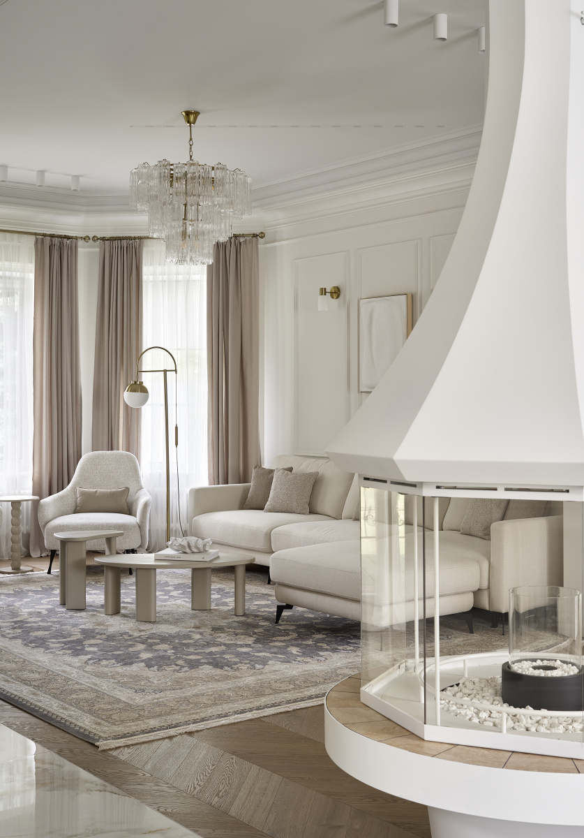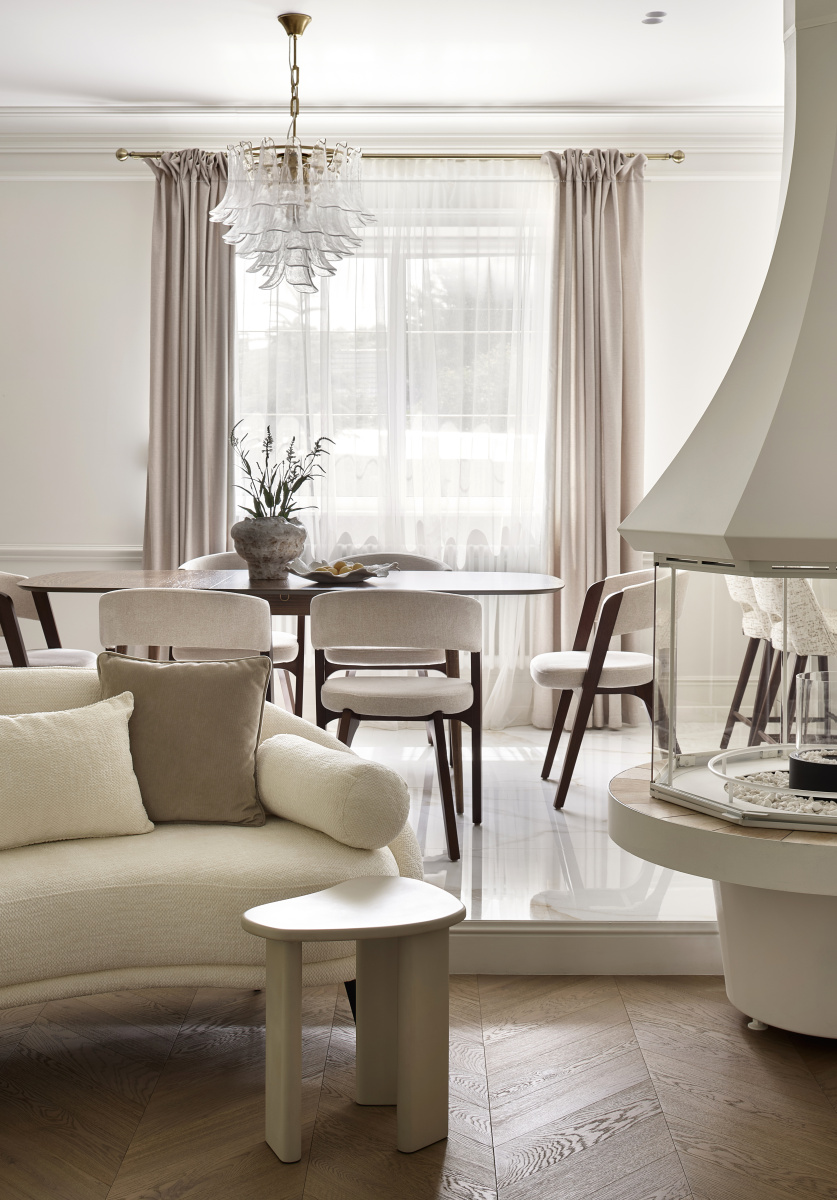 Интерьер дома мы создали в мягкой, светлой гамме, чтобы он обволакивал, успокаивал и вдохновлял своих жителей.