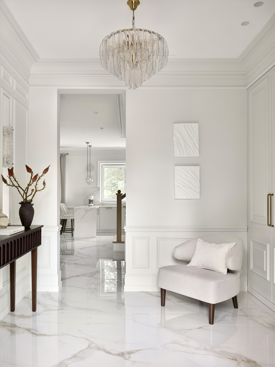 Первый этаж — сердце дома, где встречаются традиции и современность: уютная гостиная с камином и винтажными деталями, просторная кухня с нотками загородной романтики и изящная прихожая с эффектной консолью, зеркалами и местом для хранения.