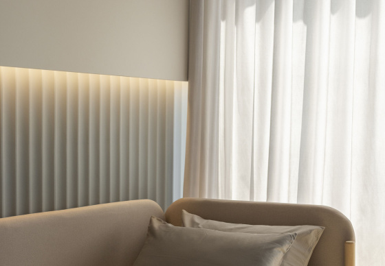 Для разводки сантехники и электрики я запроектировала зашивки из ГКЛ, они же несут и декоративную функцию.