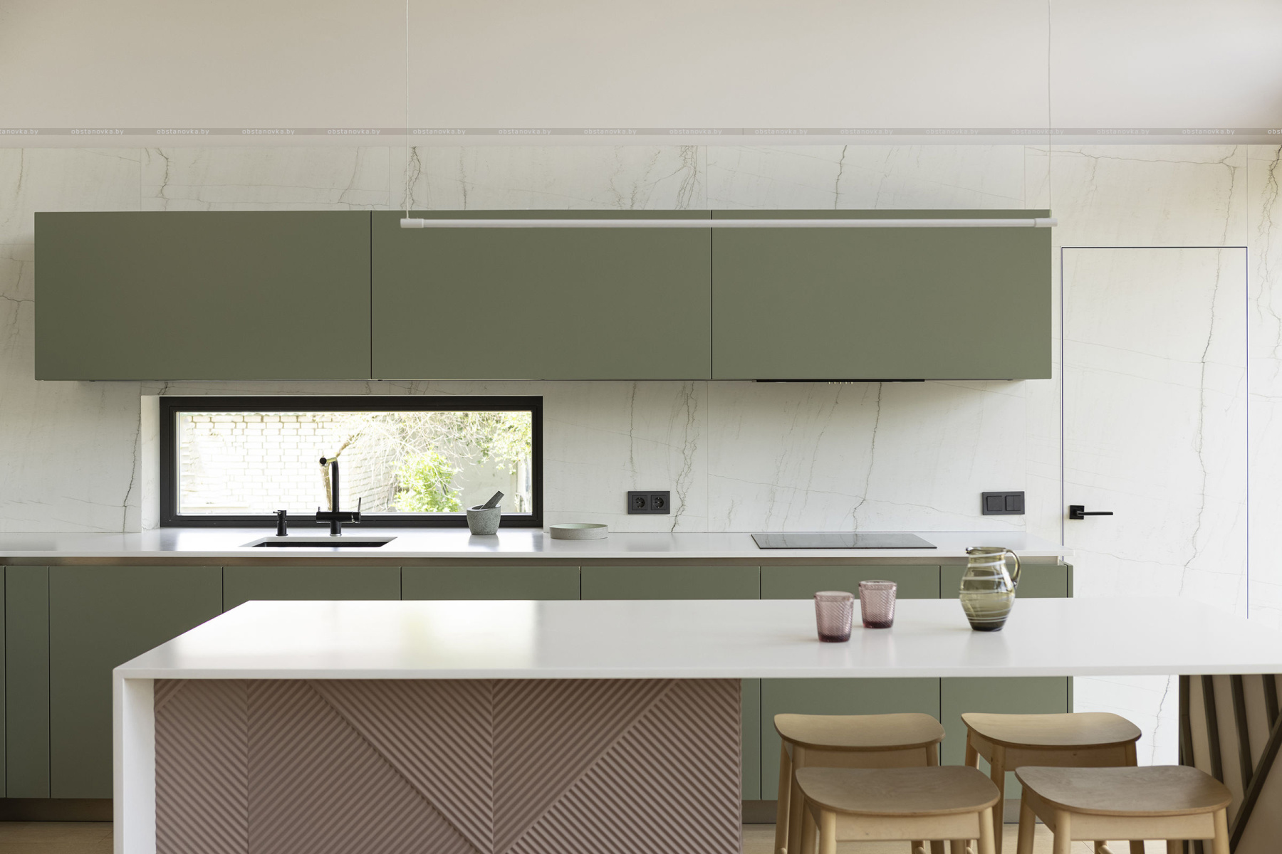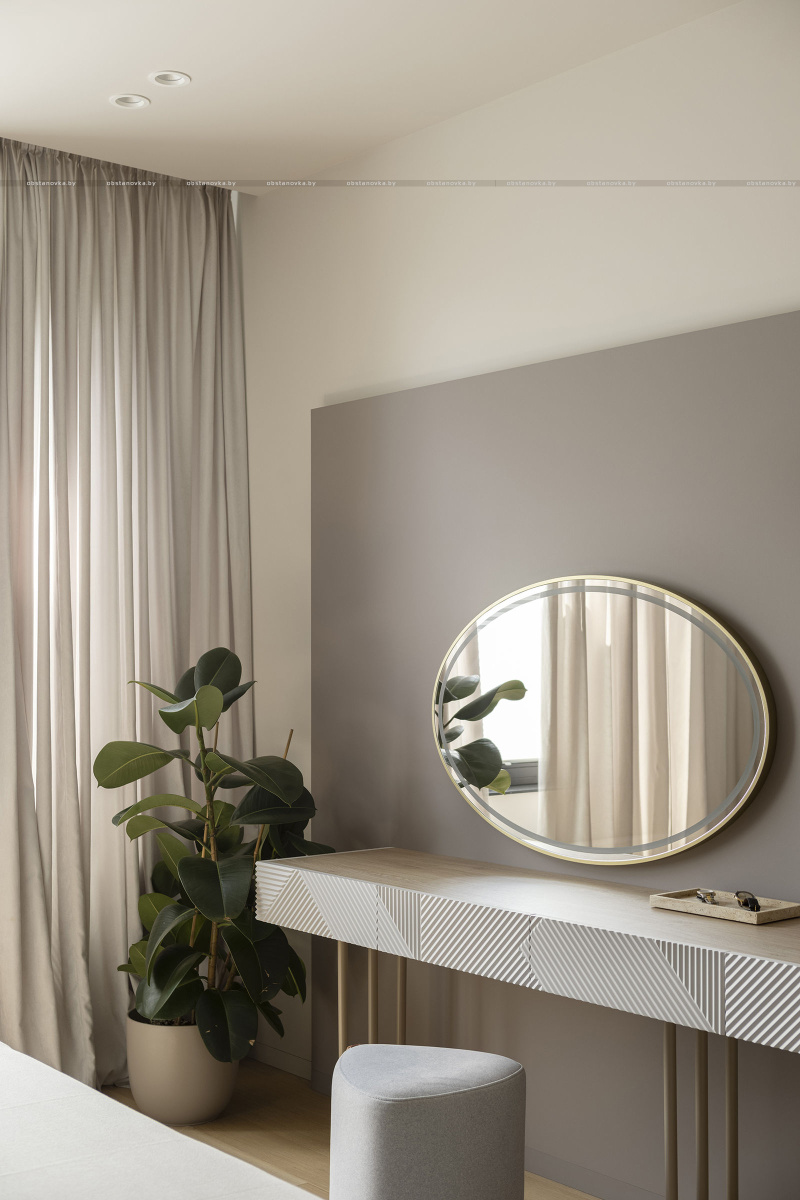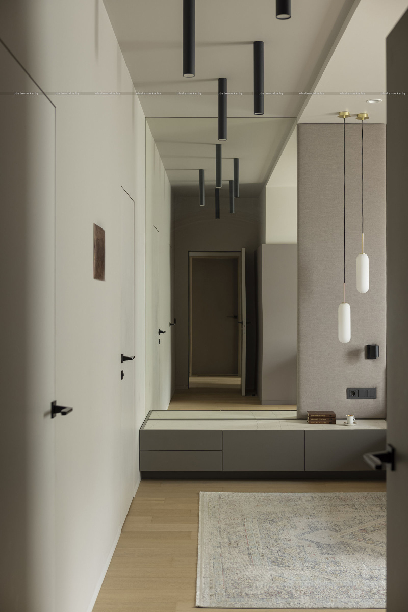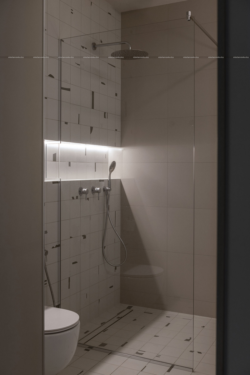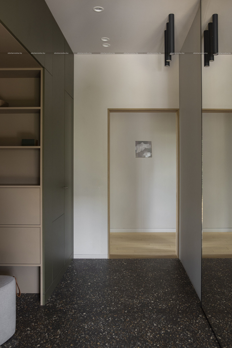 Клиенты хотели видеть в интерьере много цвета, но так, чтобы не устать от него. Для этого я составила сложную по гамме палитру красок, полностью отказалась от чистого белого цвета в покраске, подобрала керамогранит с мягкими цветовыми акцентами.