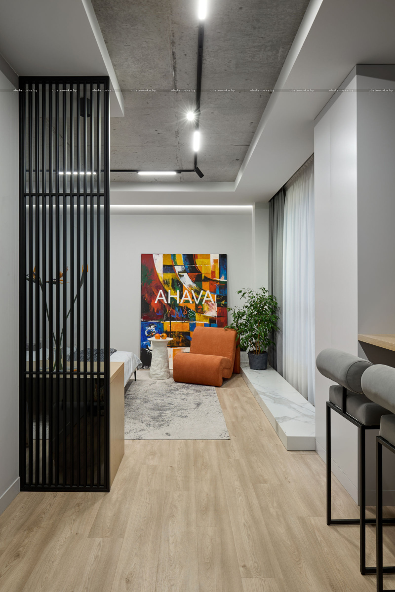 Кухня-гостиная. Шина с треками Maytoni. Кварц-винил Berry Alloc