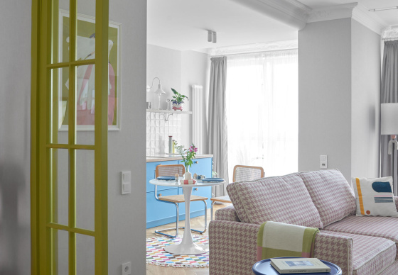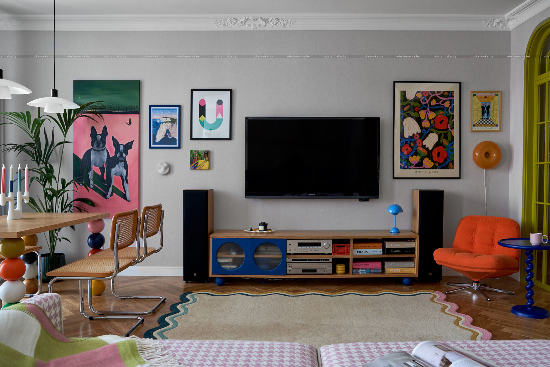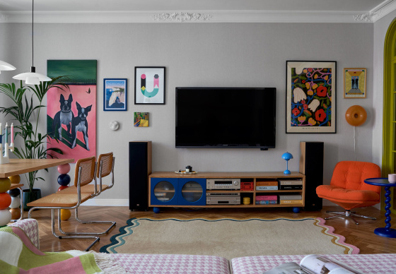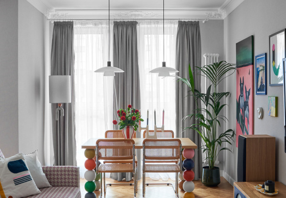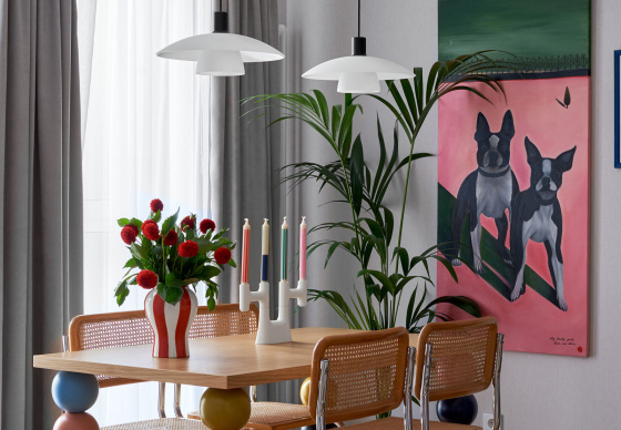 Квартира для пары ярких молодых людей и их трех бостон-терьеров.