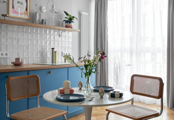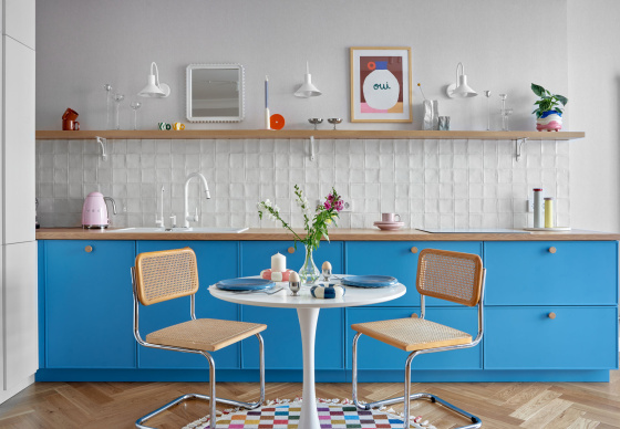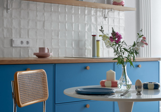 Кухня. Плитка Equipe. Посуда HAY