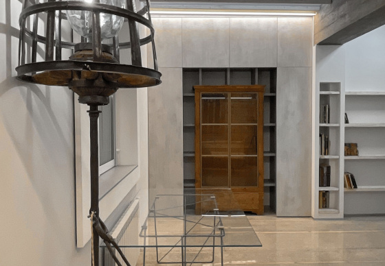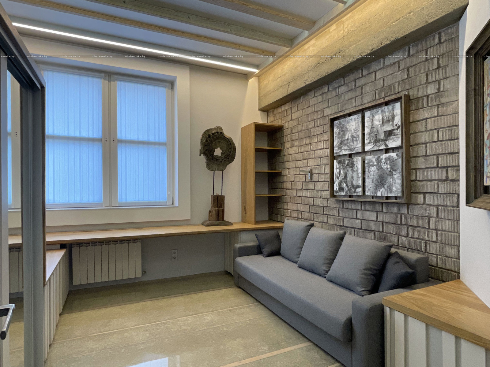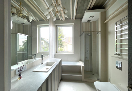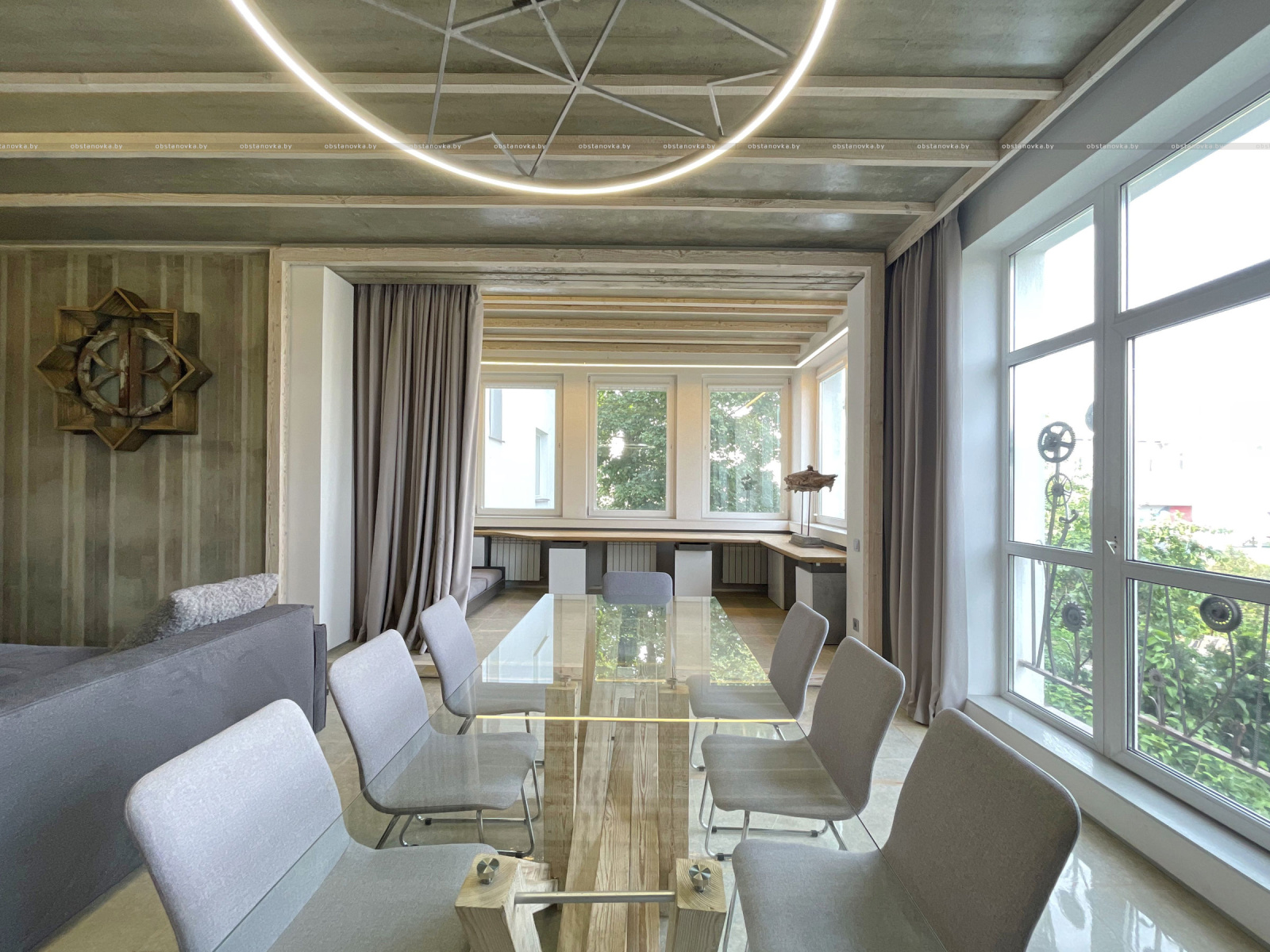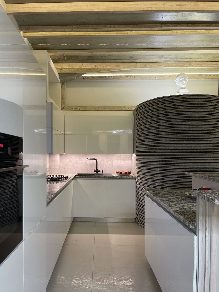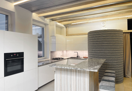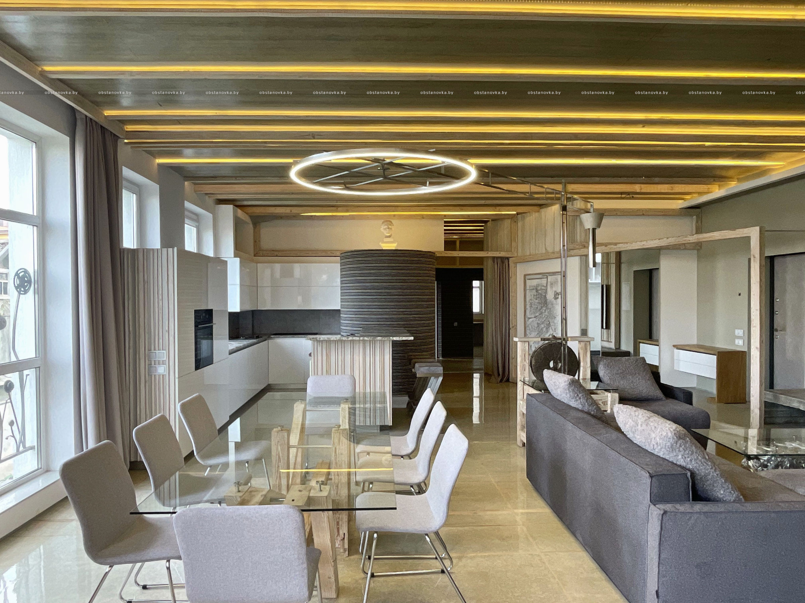 Пэўна што яны перамяжуюцца з сучасным аздабленнем. Столі кватэры выкананы з памытых бетонных пліт і зафіксаваны матавай грунтоўкай. Шчыліны паміж плітамі зачынены прадоўгімі ліхтарамі з дрэва і светадзіодаў, якія нагадваюць звыклыя бэлькі.