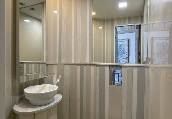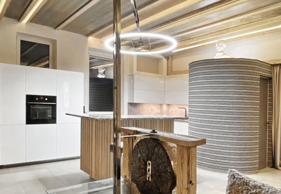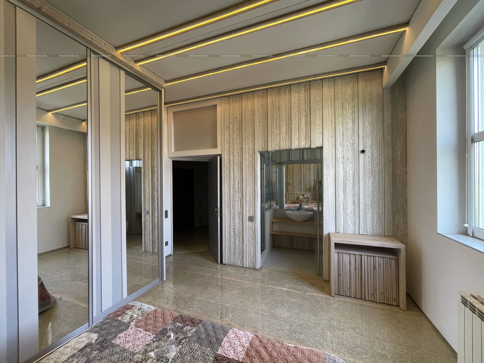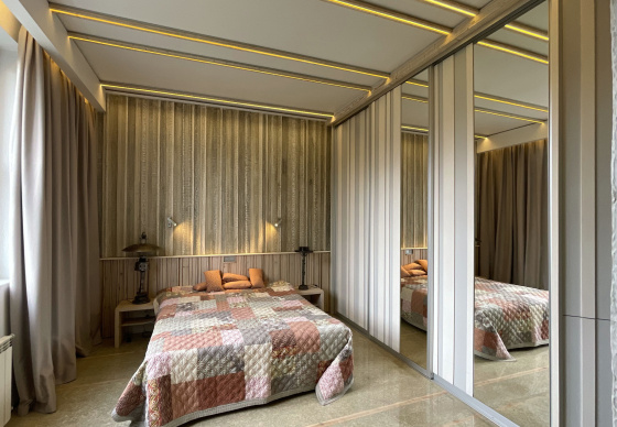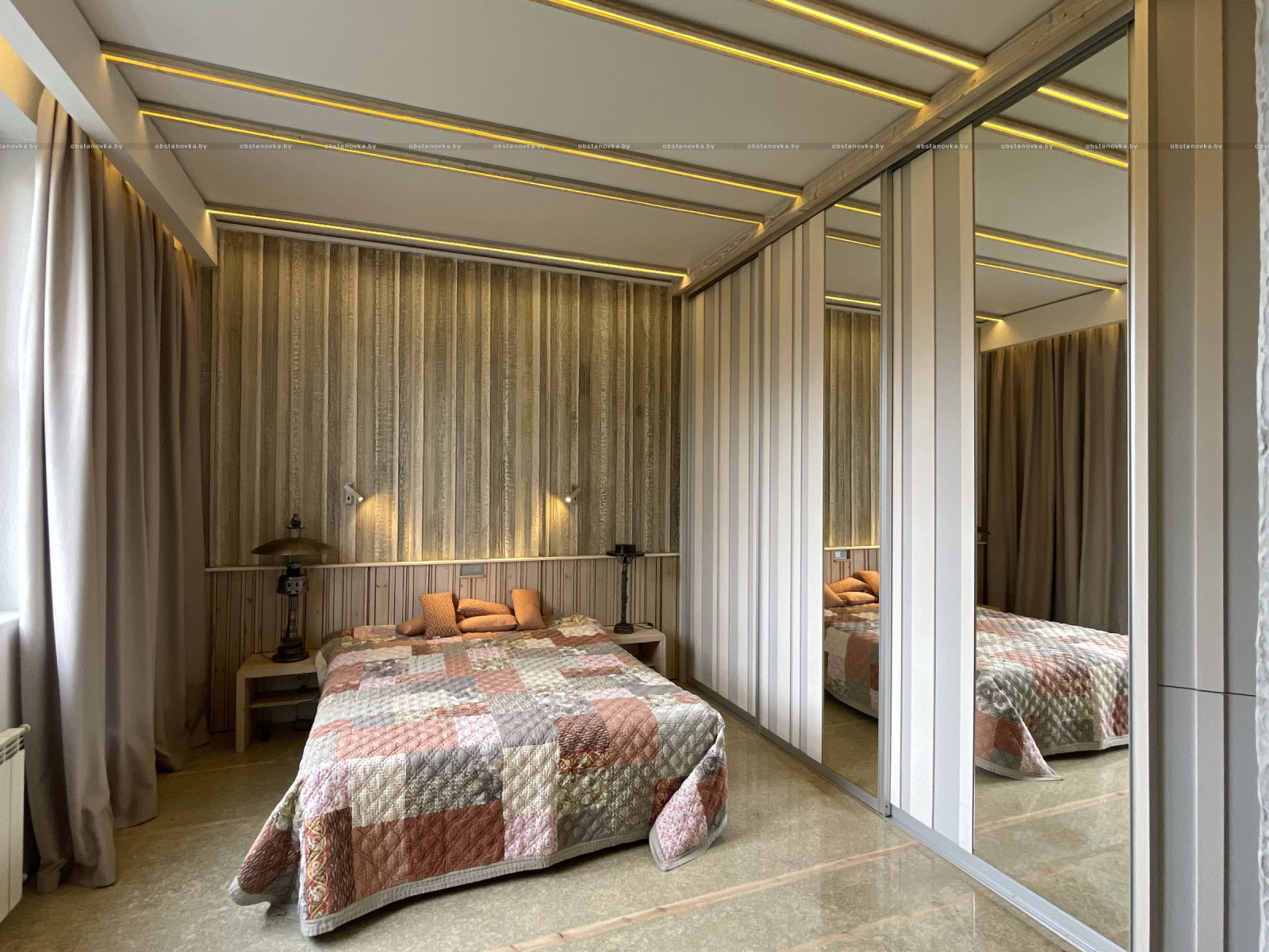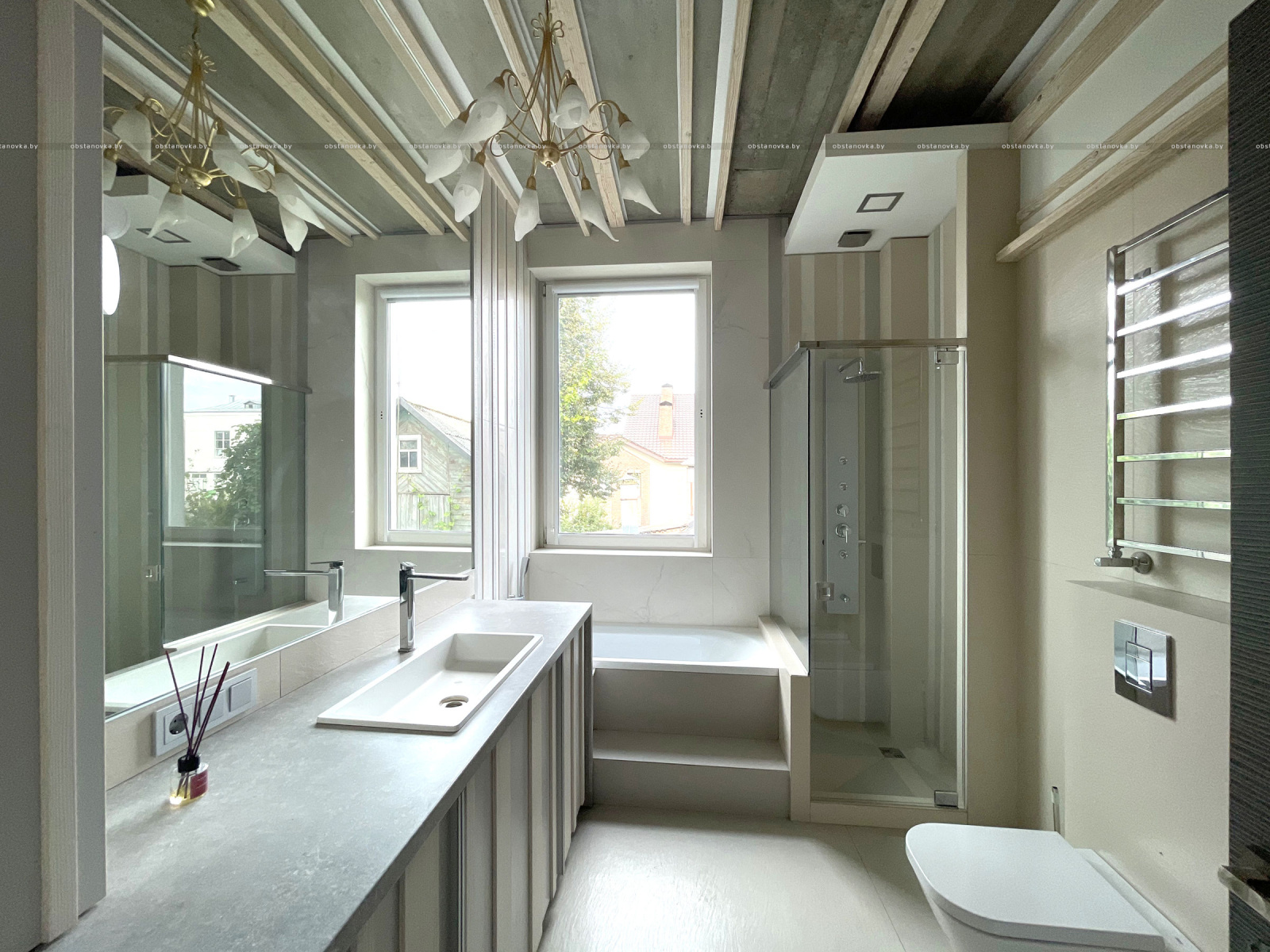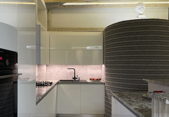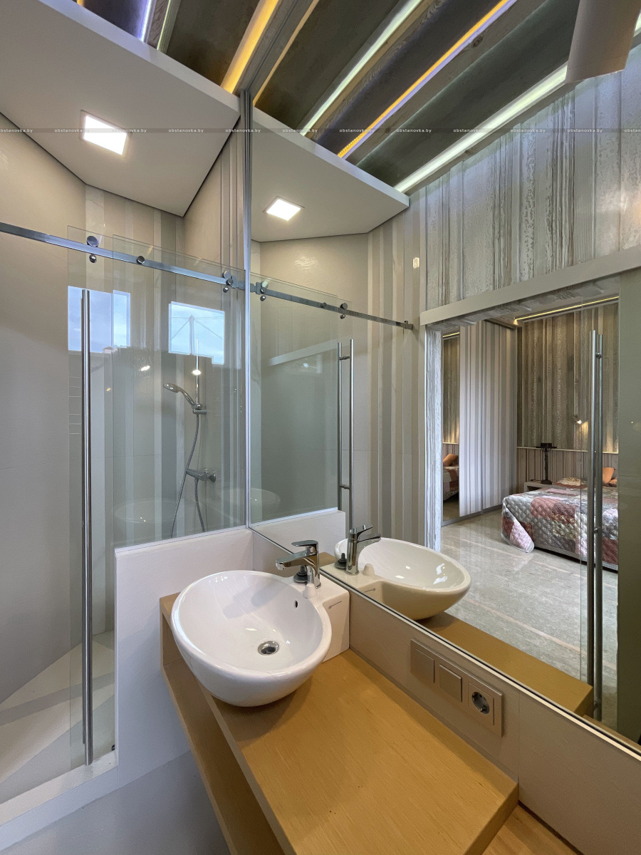 Пэўна што яны перамяжуюцца з сучасным аздабленнем. Столі кватэры выкананы з памытых бетонных пліт і зафіксаваны матавай грунтоўкай. Шчыліны паміж плітамі зачынены прадоўгімі ліхтарамі з дрэва і светадзіодаў, якія нагадваюць звыклыя бэлькі.