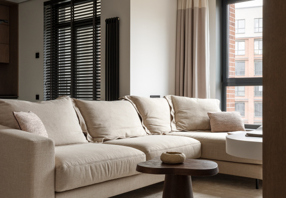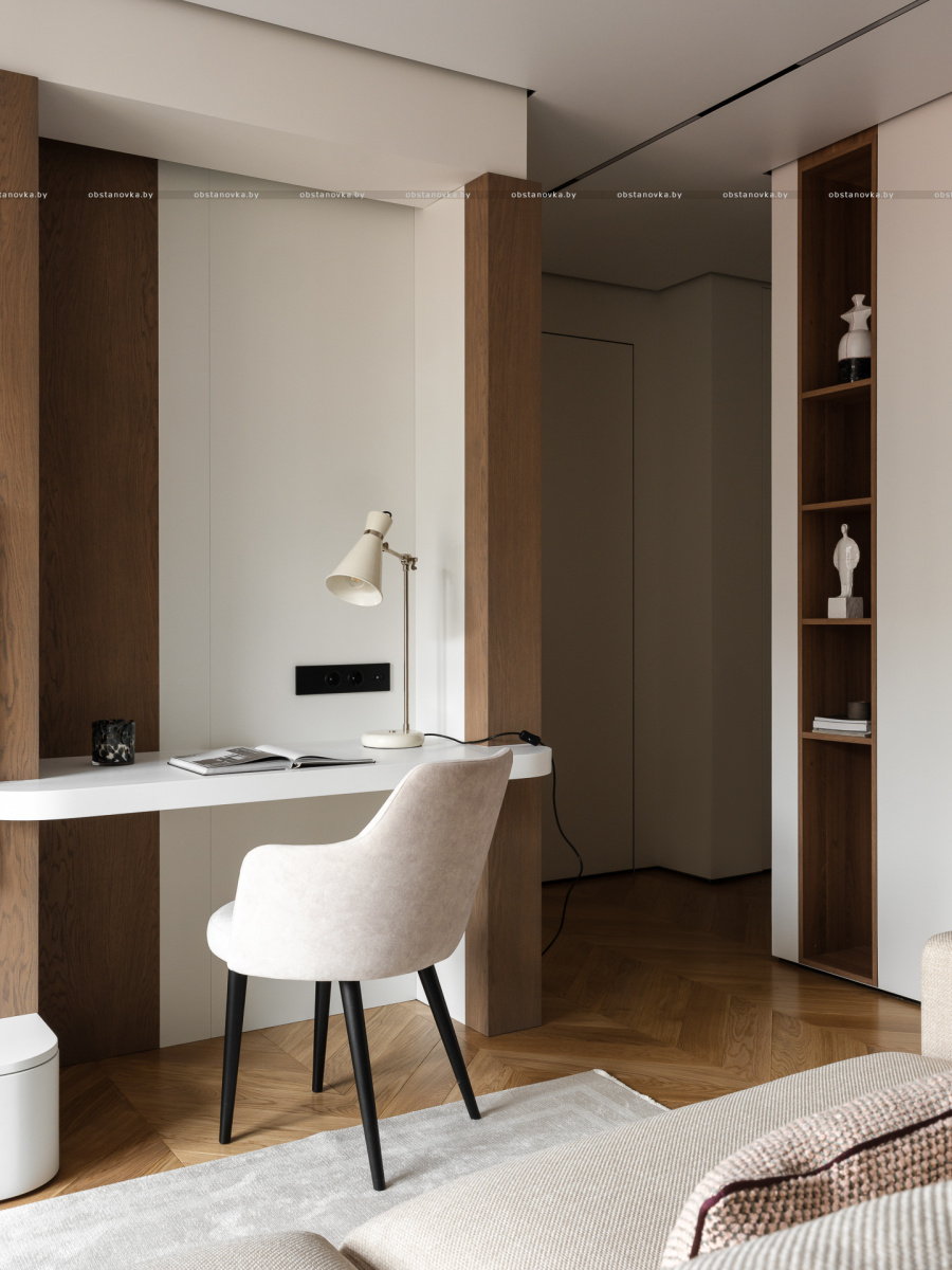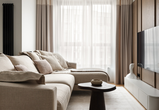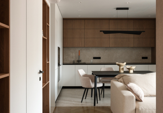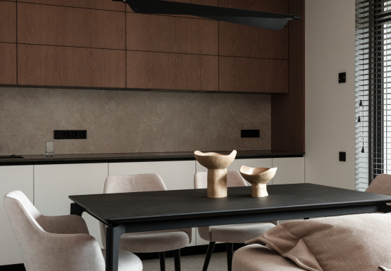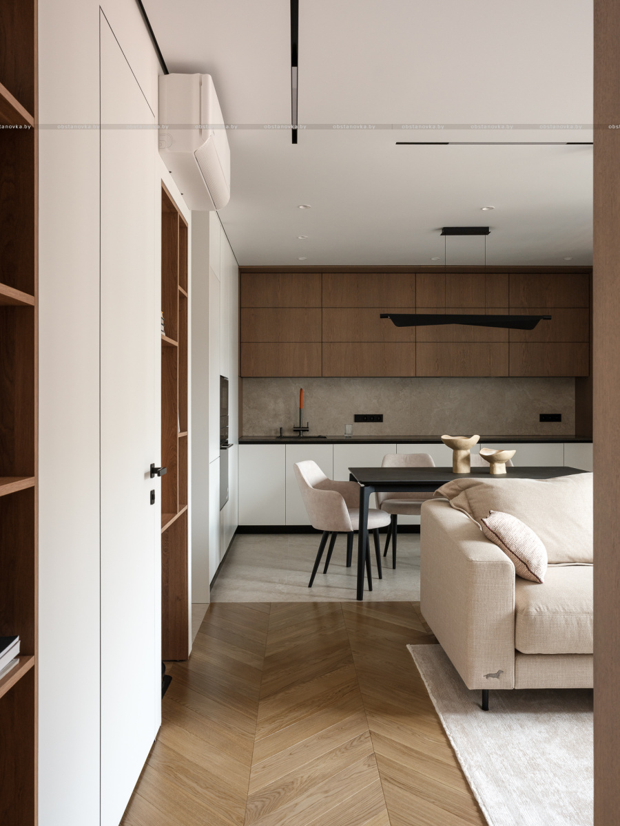 При этом в интерьере хотелось видеть умеренный контраст и избежать скуки и излишней простоты. Важно было сохранить баланс между сдержанностью и выразительностью, чтобы пространство оставалось живым и интересным.