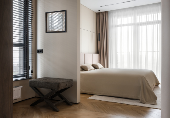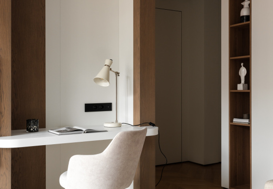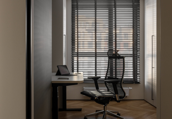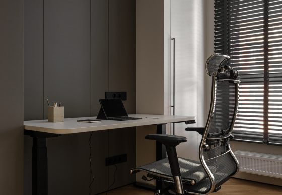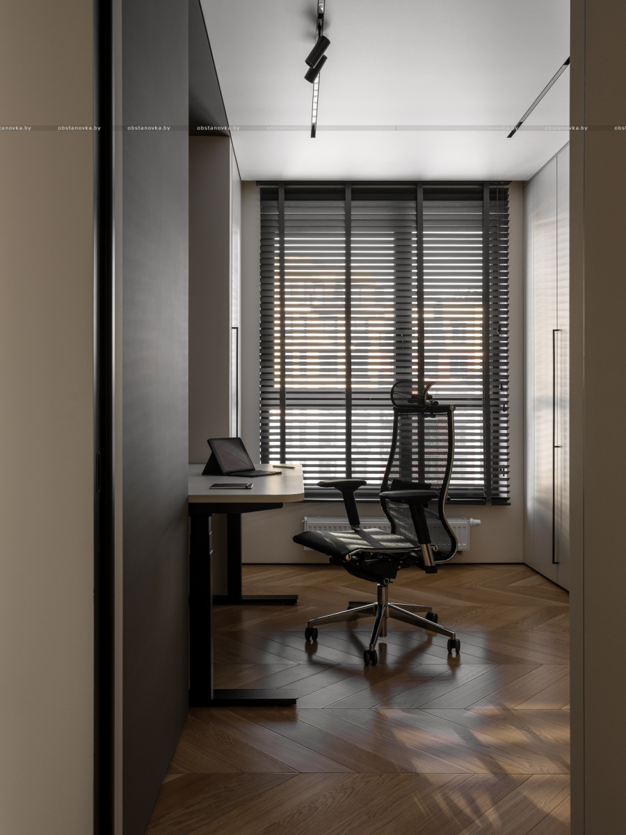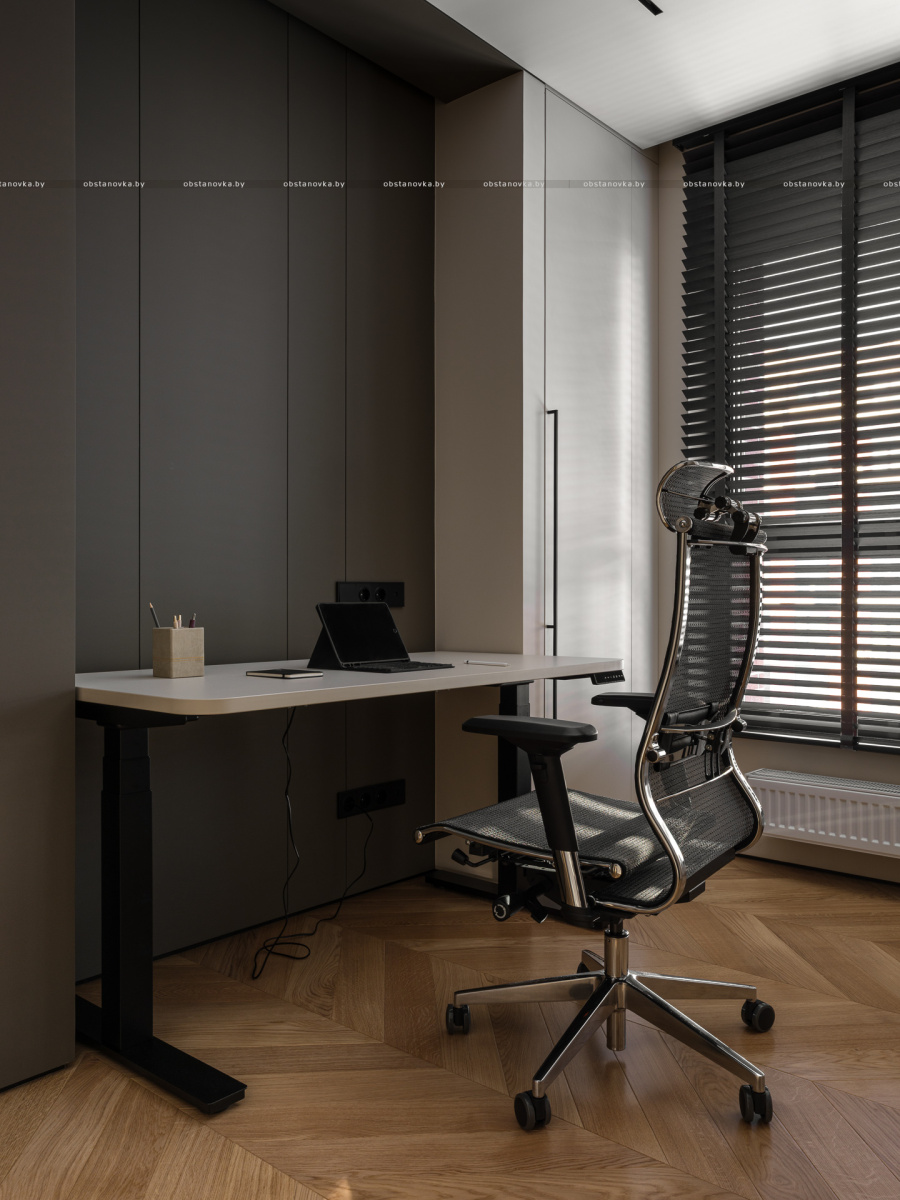 В результате получился интерьер, в котором комфортно работать, отдыхать и восстанавливать силы — спокойный, функциональный и при этом выразительный.