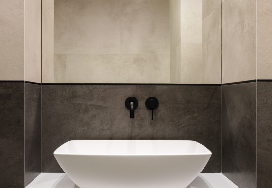 Дерево добавляет теплоту и естественность, смягчая строгость линий, а графитовые элементы формируют глубину и подчёркивают характер интерьера.