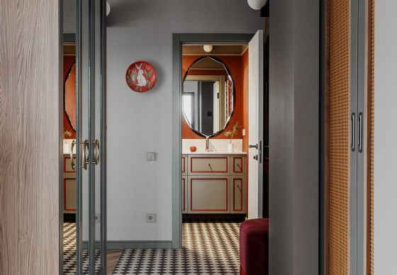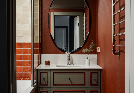 В квартире два санузла и полноценный гардероб с постирочной зоной. В этой квартире я постаралась максимально объединить эстетику и функциональность.