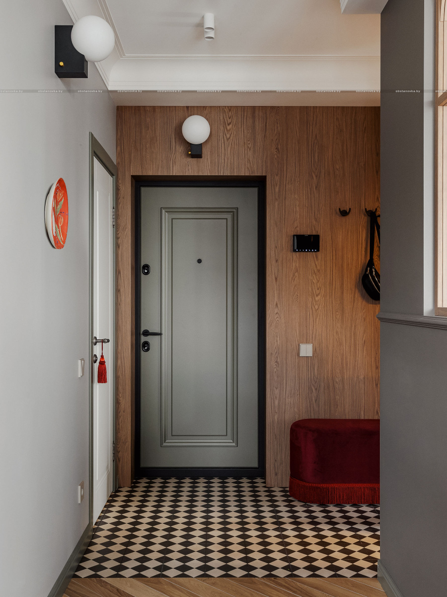 Прихожая. Плитка под дерево Kerama Marazzi. Плитка клетка Aparici. Керамика Олег Боричевский
