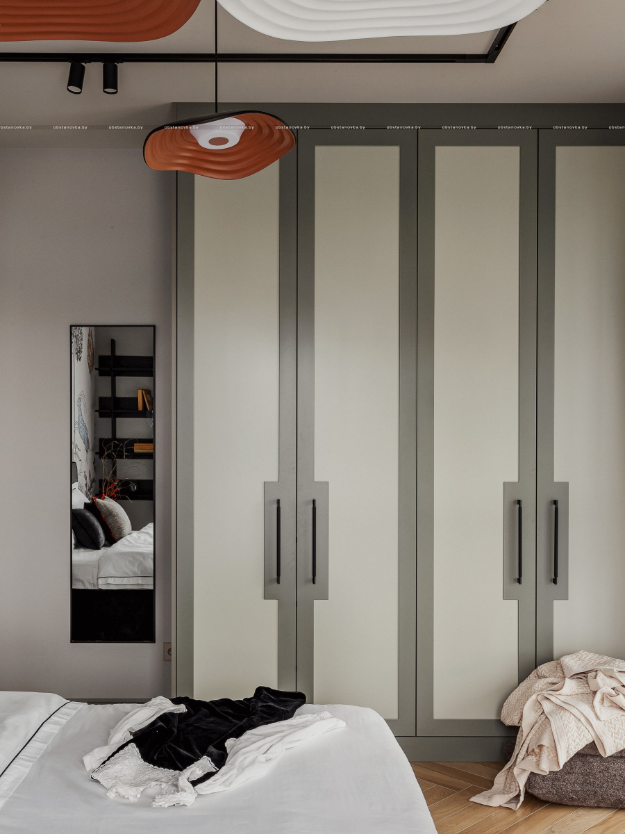 Спальня. Свет Odeon Light. Стулья Sandalyeci. Керамическая фигурка обезьяна Олег Боричевский