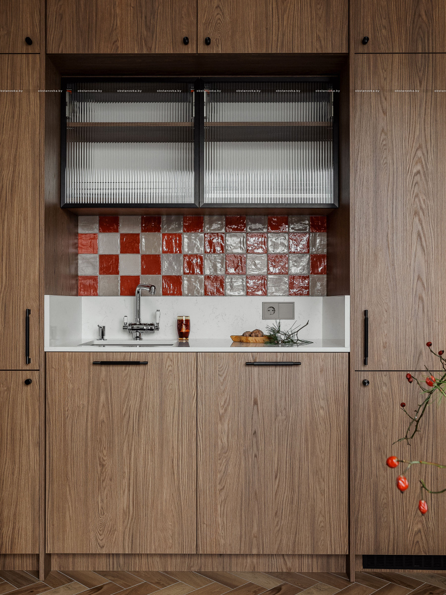 В квартире использовались как натуральные материалы, так и антивандальные и практичные решения.