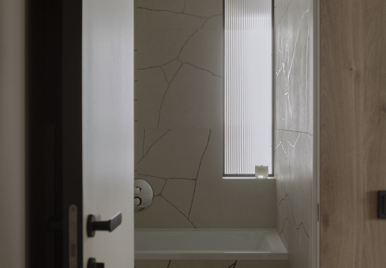 Одна из самых стильных и необычных деталей — окно между ванной и гостиной. Этот элемент открывает новое измерение для восприятия пространства, стирая границы между зонами и добавляя ощущение света и воздуха даже в интимные помещения, такие как ванная.