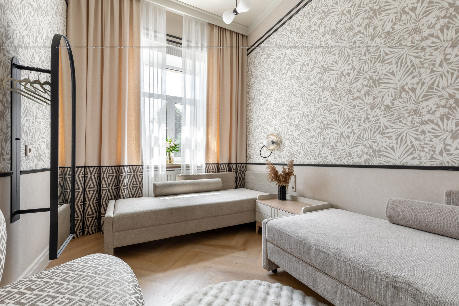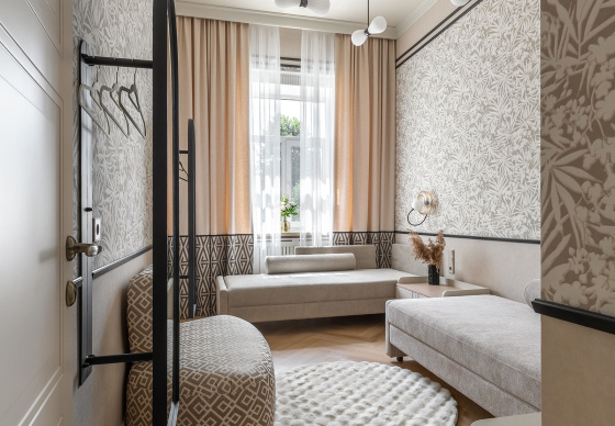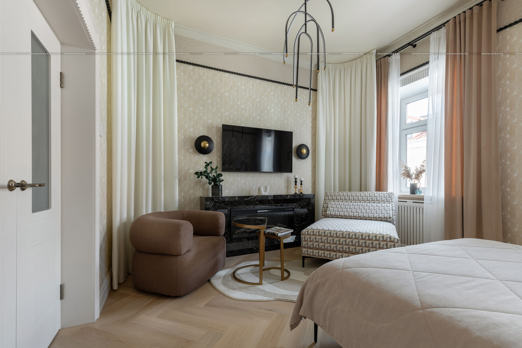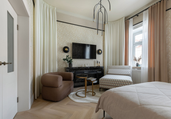 Стояла задача создать интерьер, который не спорил бы с историческим обликом здания, а становился его гармоничным и логичным продолжением. Квартира предназначена для краткосрочной аренды, должна встречать гостей города, рассказывать его историю через детали и создавать такое чувство уюта и уникальности, чтобы хотелось возвращаться снова.