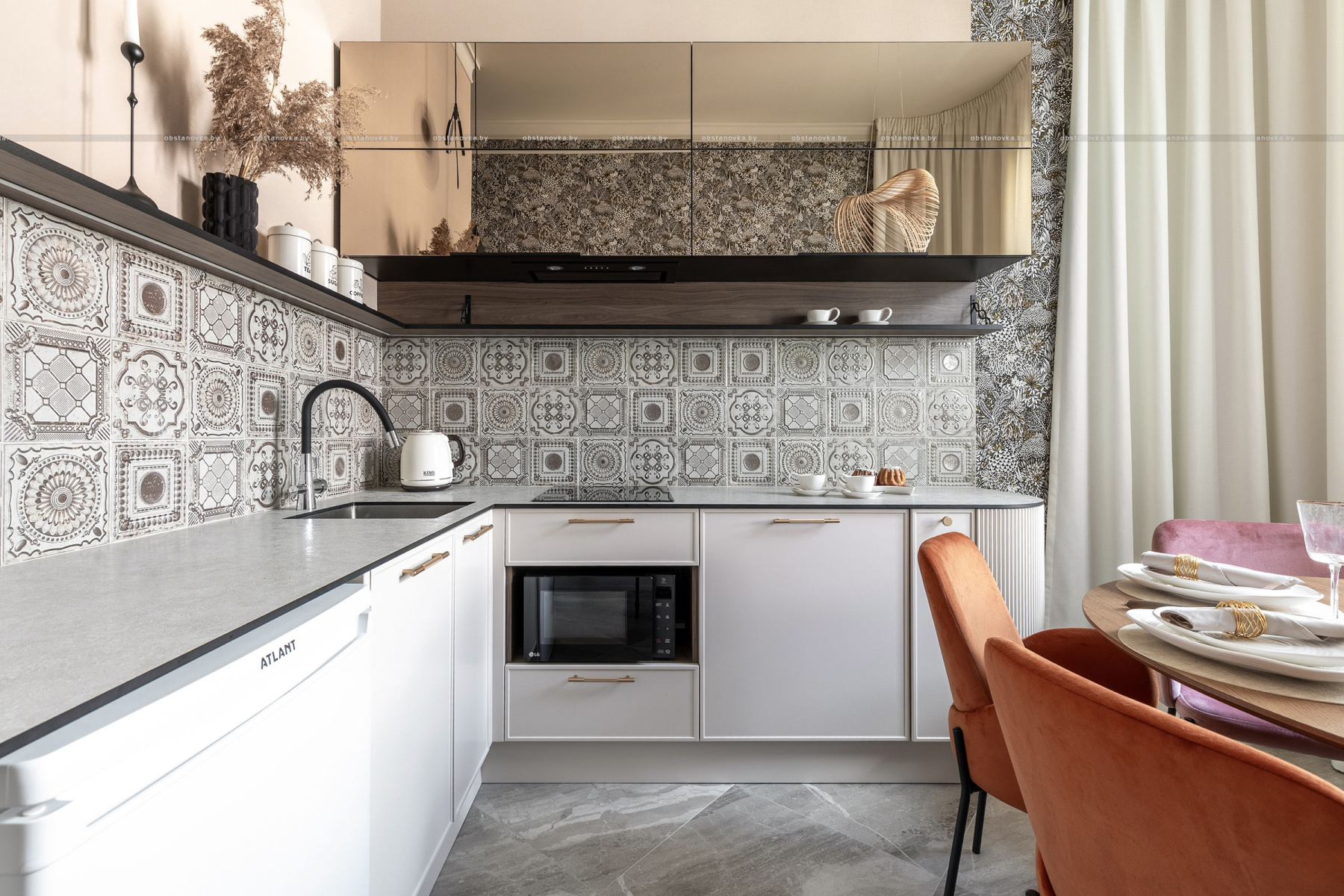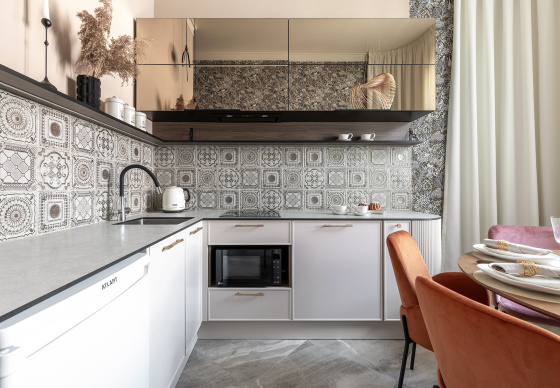 Кухня. Керамическая плитка Mainzu. Люстра ST Luce