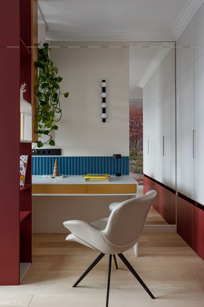 Этот проект создан для активной семьи, которая ценит яркие акценты и комфорт в интерьере. Квартира станет идеальным местом для отдыха после путешествий по Беларуси, так как Минск — это их уютный причал на время отпуска в живописной Беларуси.