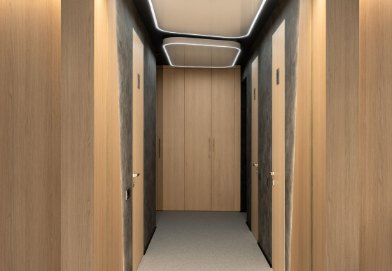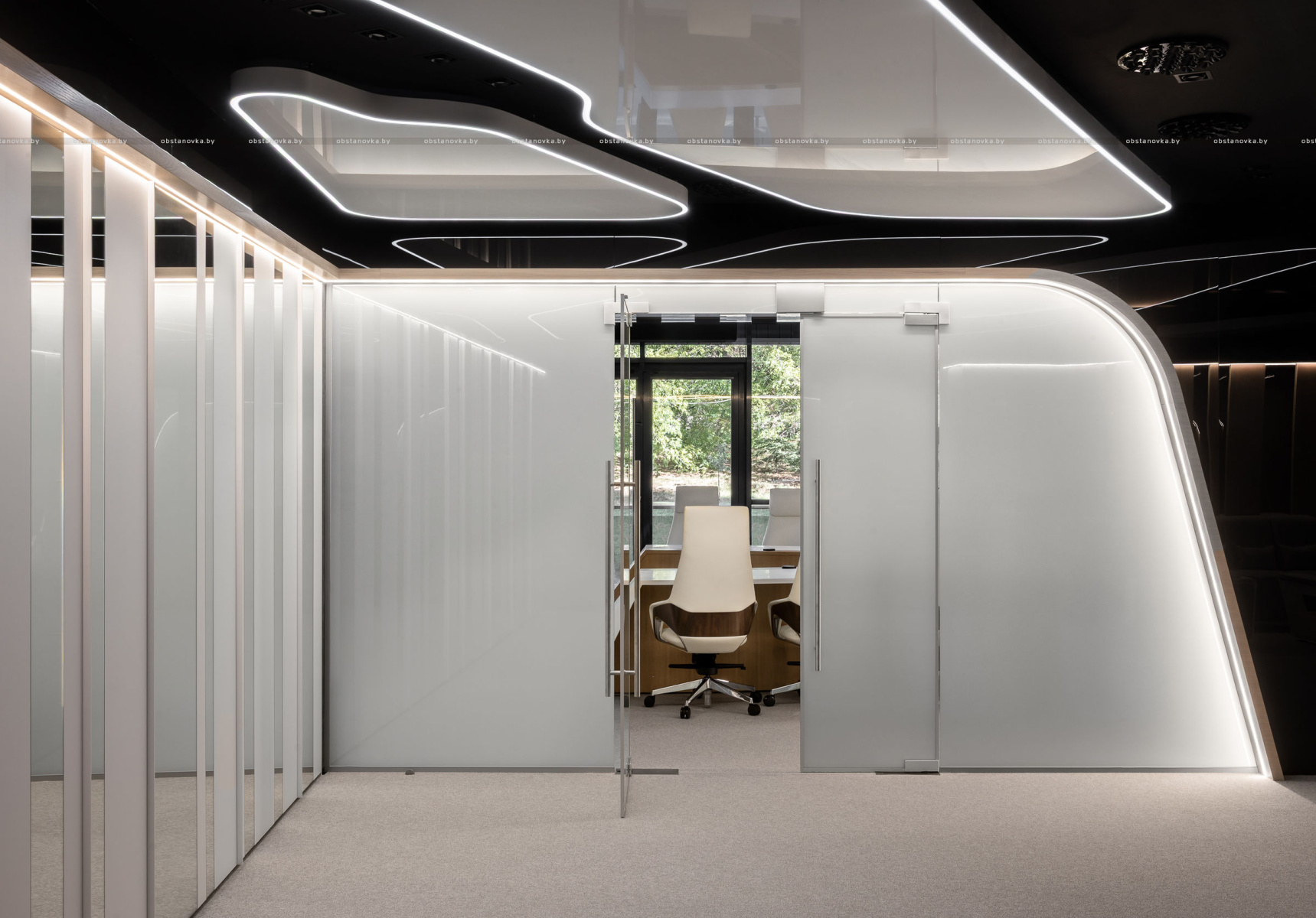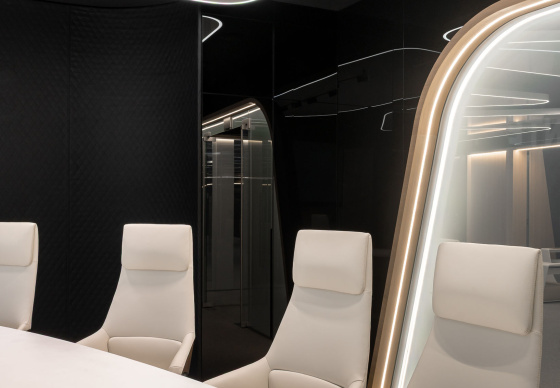 Зал легко трансформируется и зонируется с помощью стеклянных мобильных перегородок. Это позволяет использовать пространство по-разному — в зависимости от количества участников и формата мероприятия.