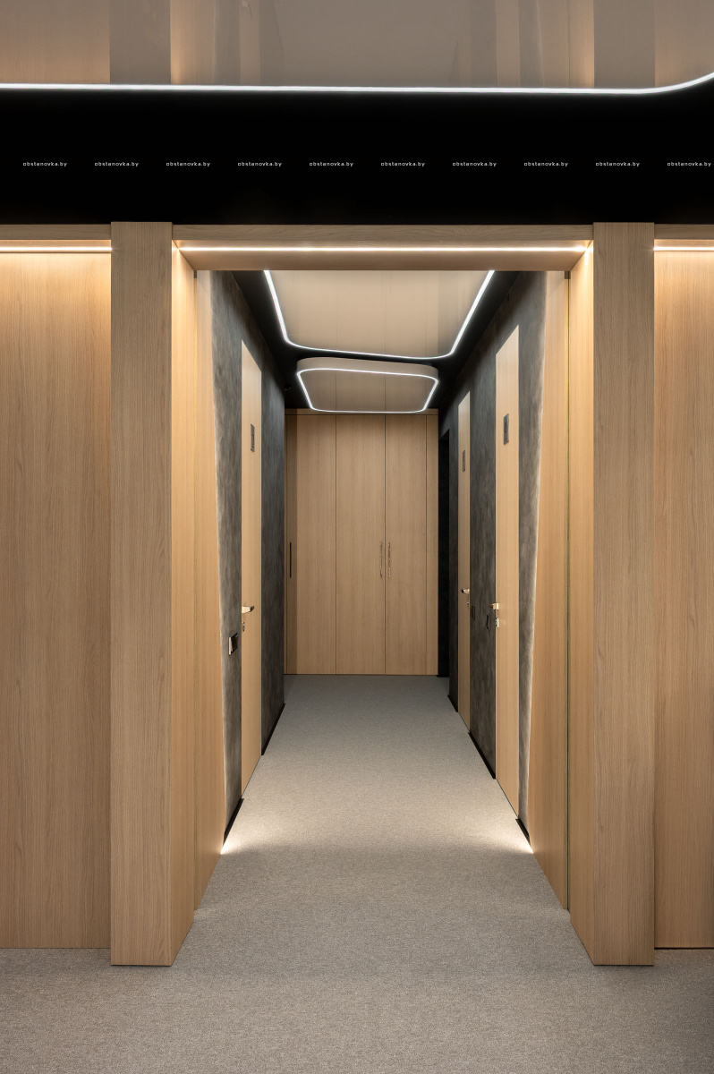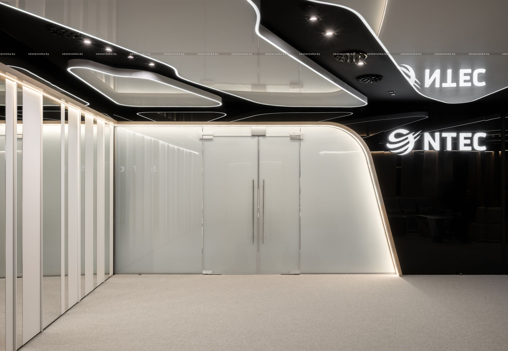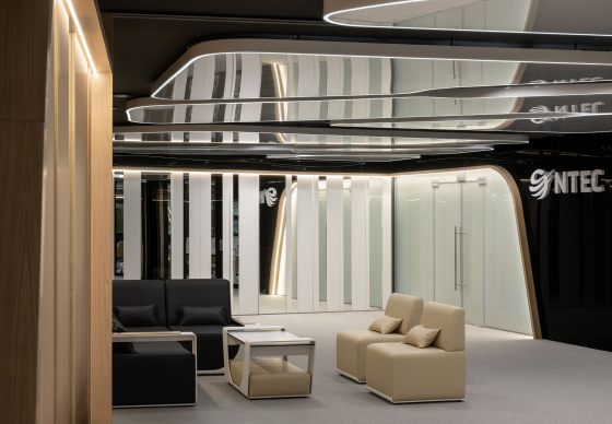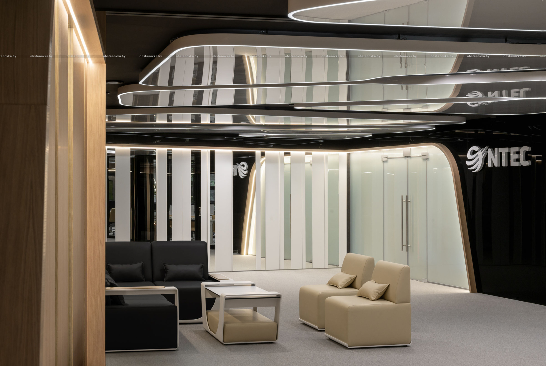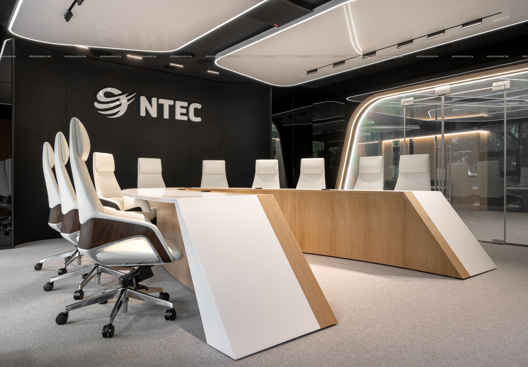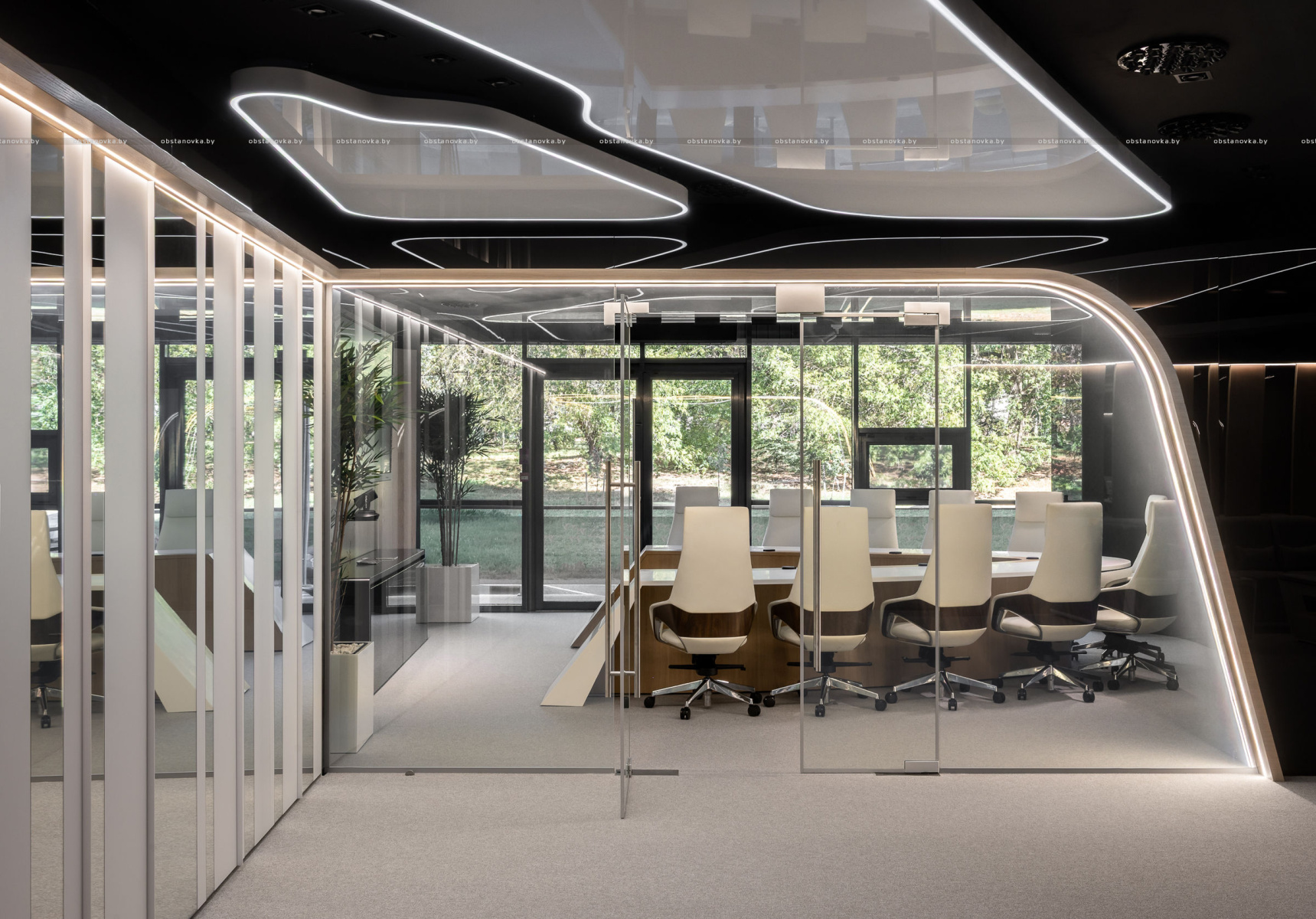 Интерьер представляет собой современный компьютерный центр с залом для переговоров. Помещение оборудовано всем необходимым для проведения встреч, совещаний и учебных мероприятий.