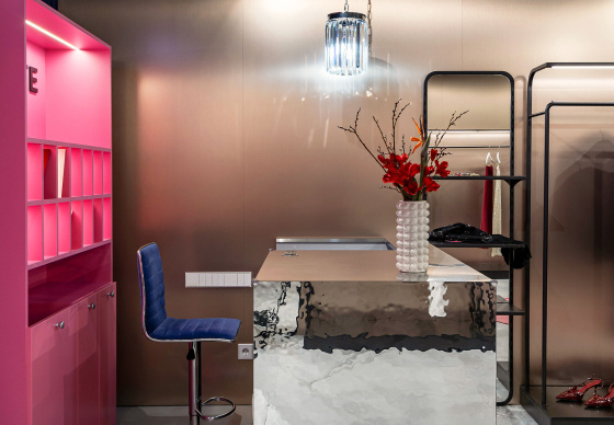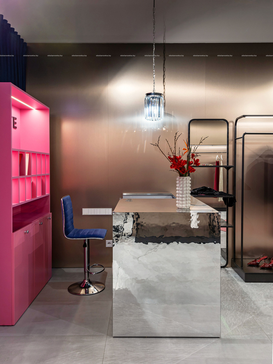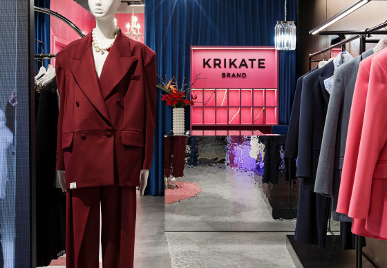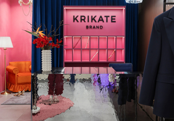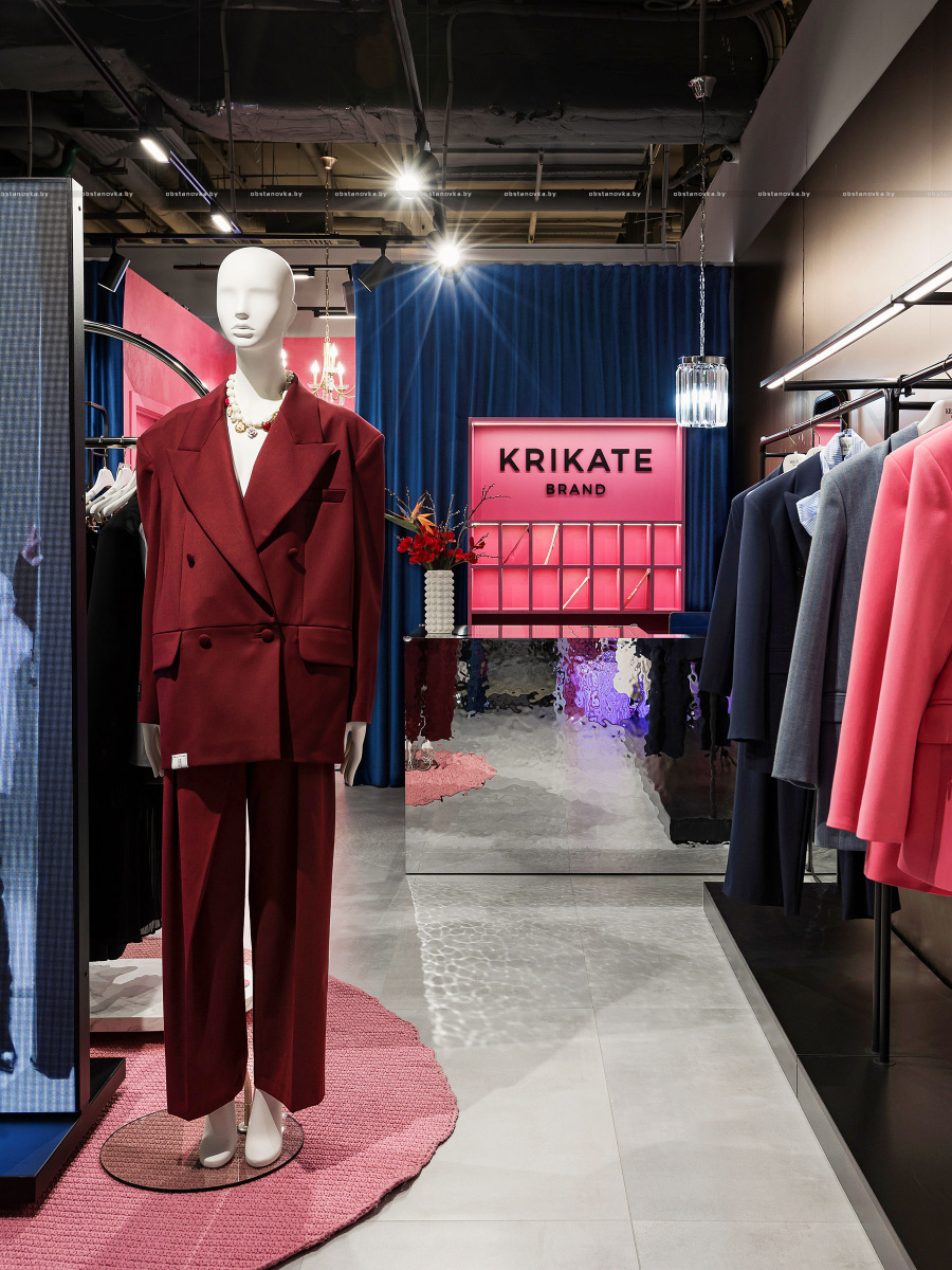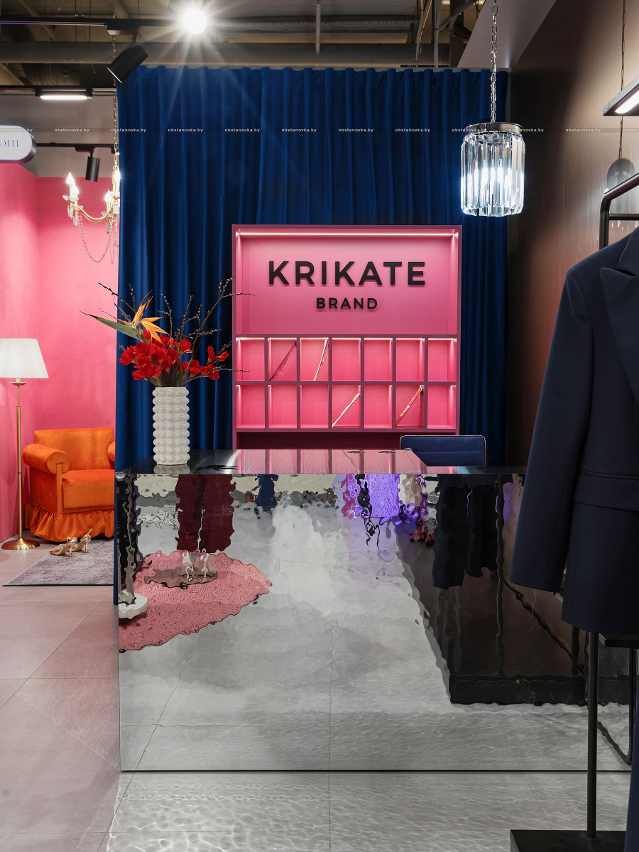 Шоурум дизайнерской одежды бренда Krikate. Это второй проект для бренда, первый был в Гродно с концепцией интерьера отеля «Гранд Будапешт».