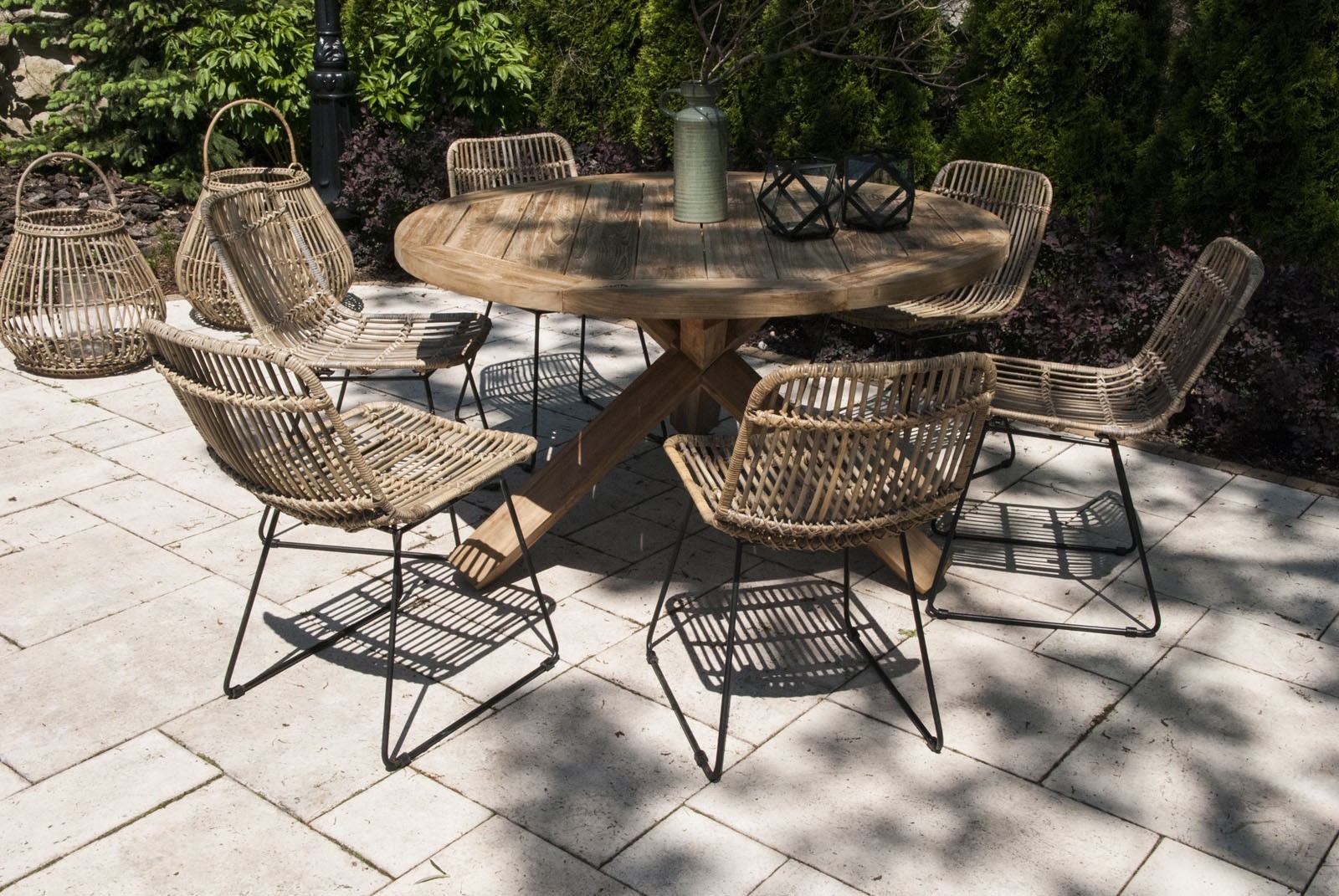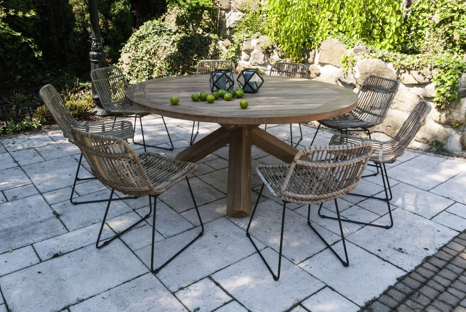 BORDEAUX легко интегрируется в разные стилистики. Для лёгких, «воздушных» решений он гармонично сочетается со стульями DINAN из натурального ротанга. Для более статусных и комфортных зон — с плетёными креслами VERSAILLES, создавая ощущение приватного курортного пространства.