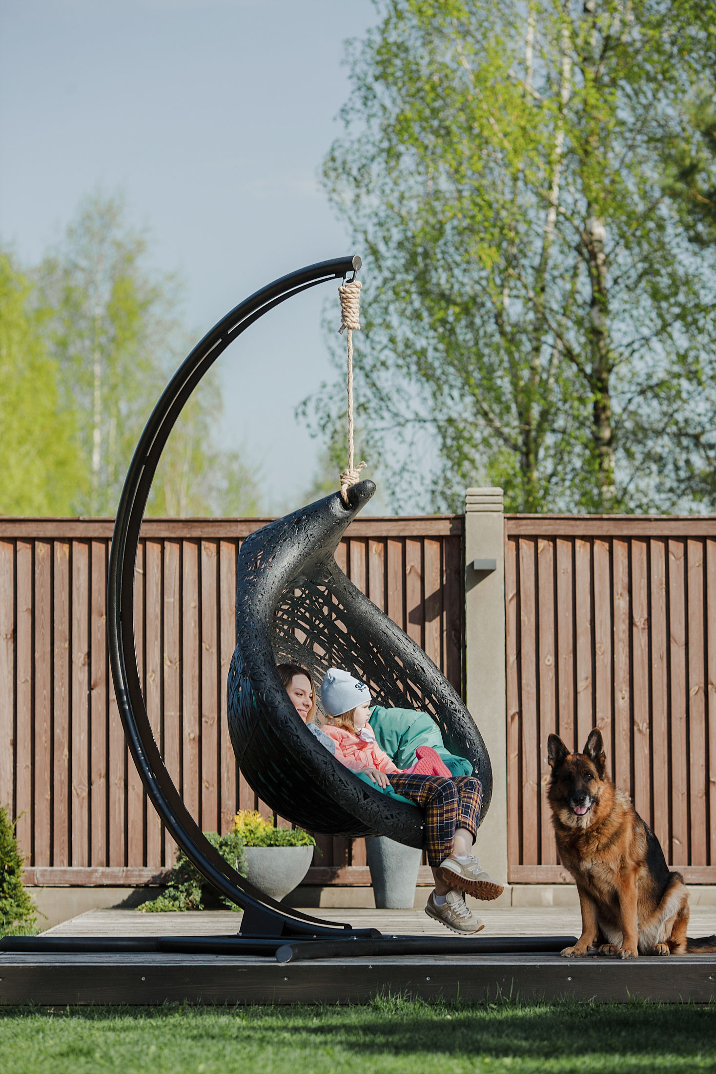 Подвесное кресло Bios Lucid отличается своей открытостью и нестандартным дизайном среди подвесных кресел. Благодаря чему, находясь в нем, вы можете принимать настоящие солнечные ванны. Закругленные края обеспечивают комфортное положение сидящего в нем человека. Вы можете прикрепить его к дереву, балке либо к нашей стойке.