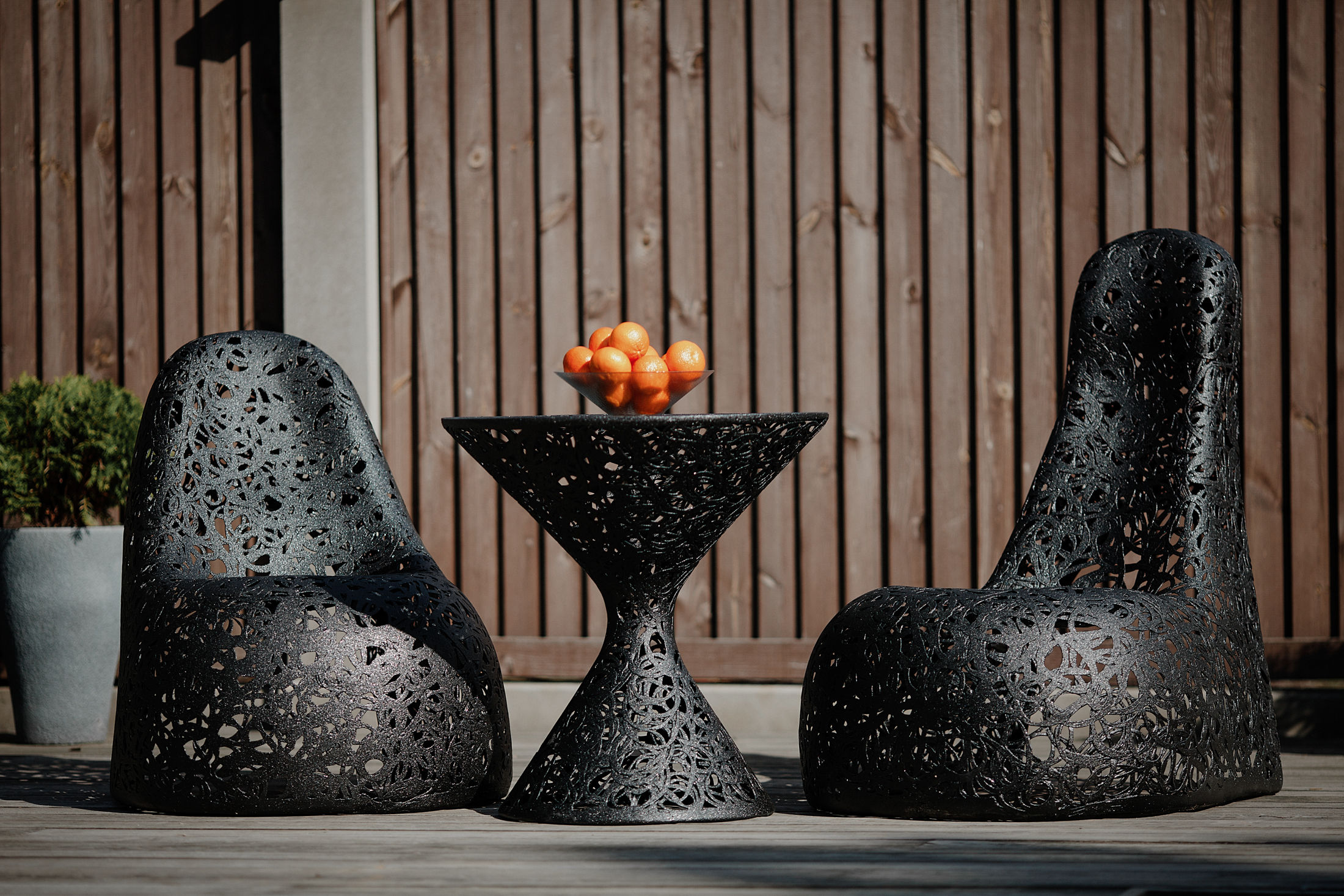 Каждый стол сочетается с любым креслом из нашей коллекции. Поэтому единство стиля соблюдается всегда. Race Table D70 – стол, который является связующим звеном всей базальтовой композиции, а форма песочных часов заставляет задуматься о том, что базальтовая мебель будет всегда за гранью времени.
